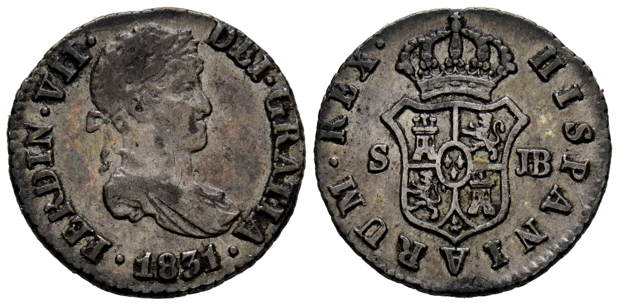 FERNANDO VII (1808-1833). 1/2 Real. (Ar. 1,46g/15mm). 1831. Sevilla JB. (Cal-2019-465). MBC+. Bonita pátina.