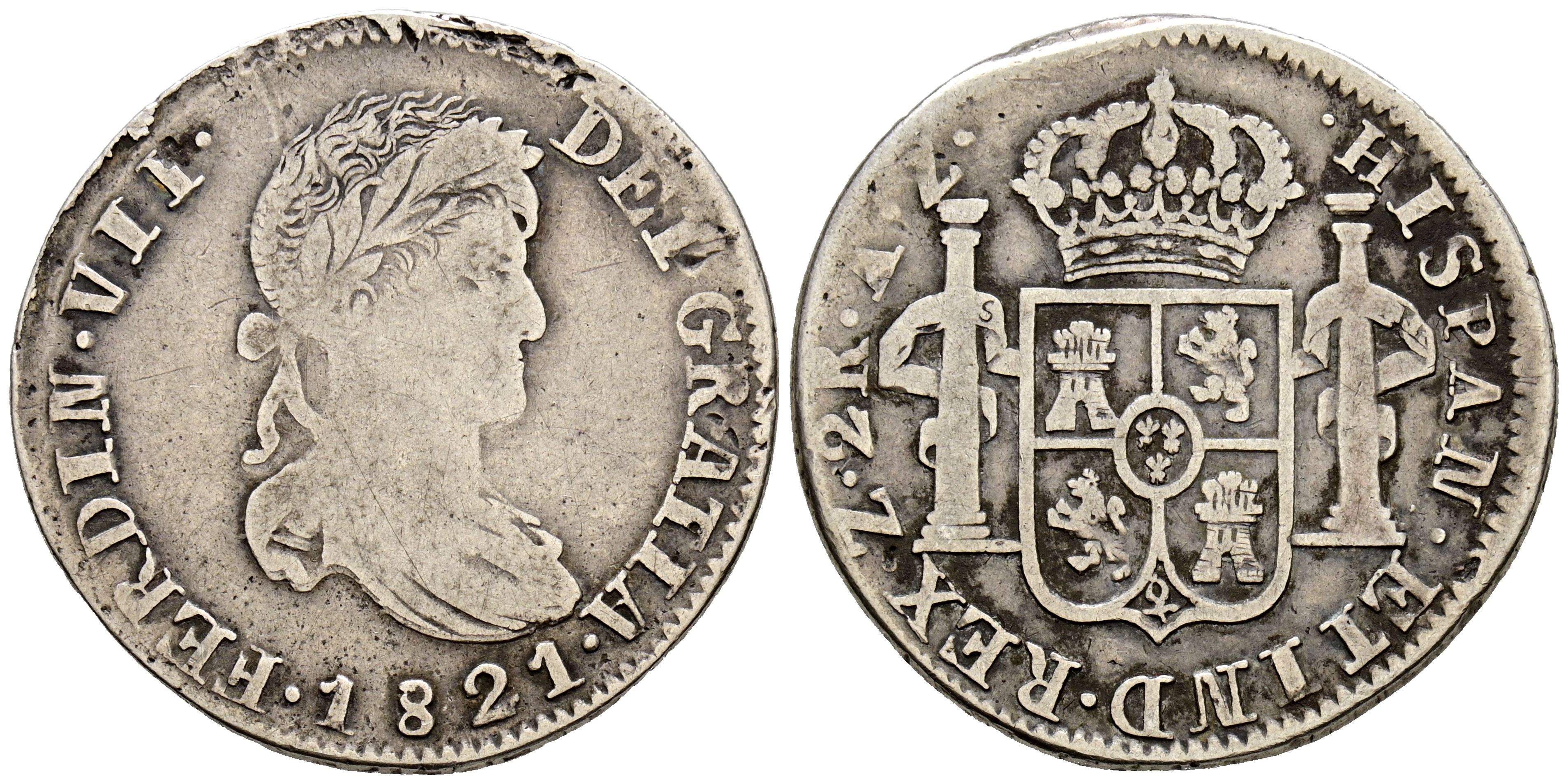 FERNANDO VII (1808-1833). 2 Reales. (Ar. 6,21g/27mm). 1821. Zacatecas AZ. (Cal-2019-1013). BC+.