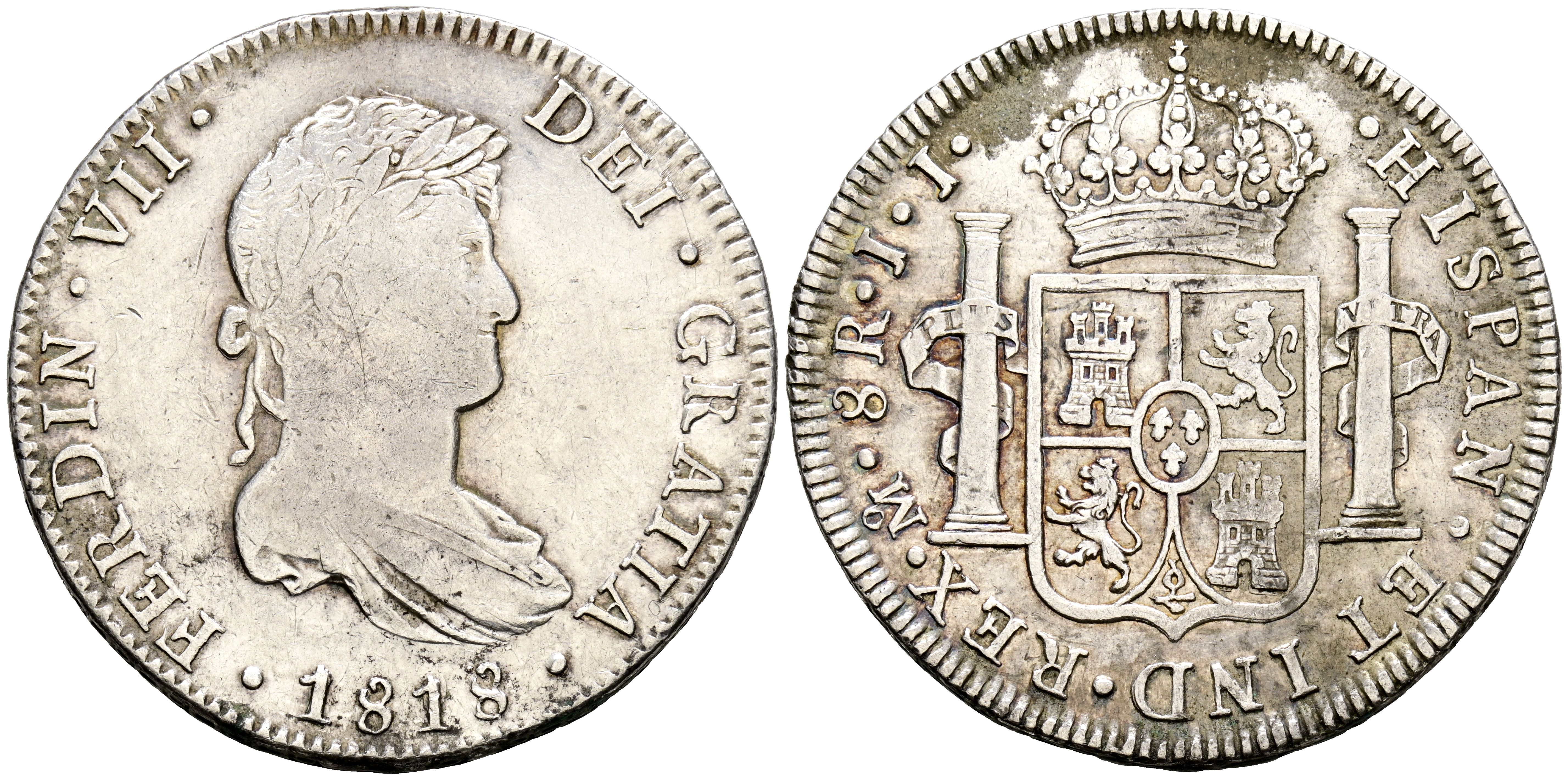 FERNANDO VII (1808-1833). 8 Reales. (Ar. 26,94g/40mm). 1818. México JJ. (Cal-2019-1333). MBC+. Oxidaciones.