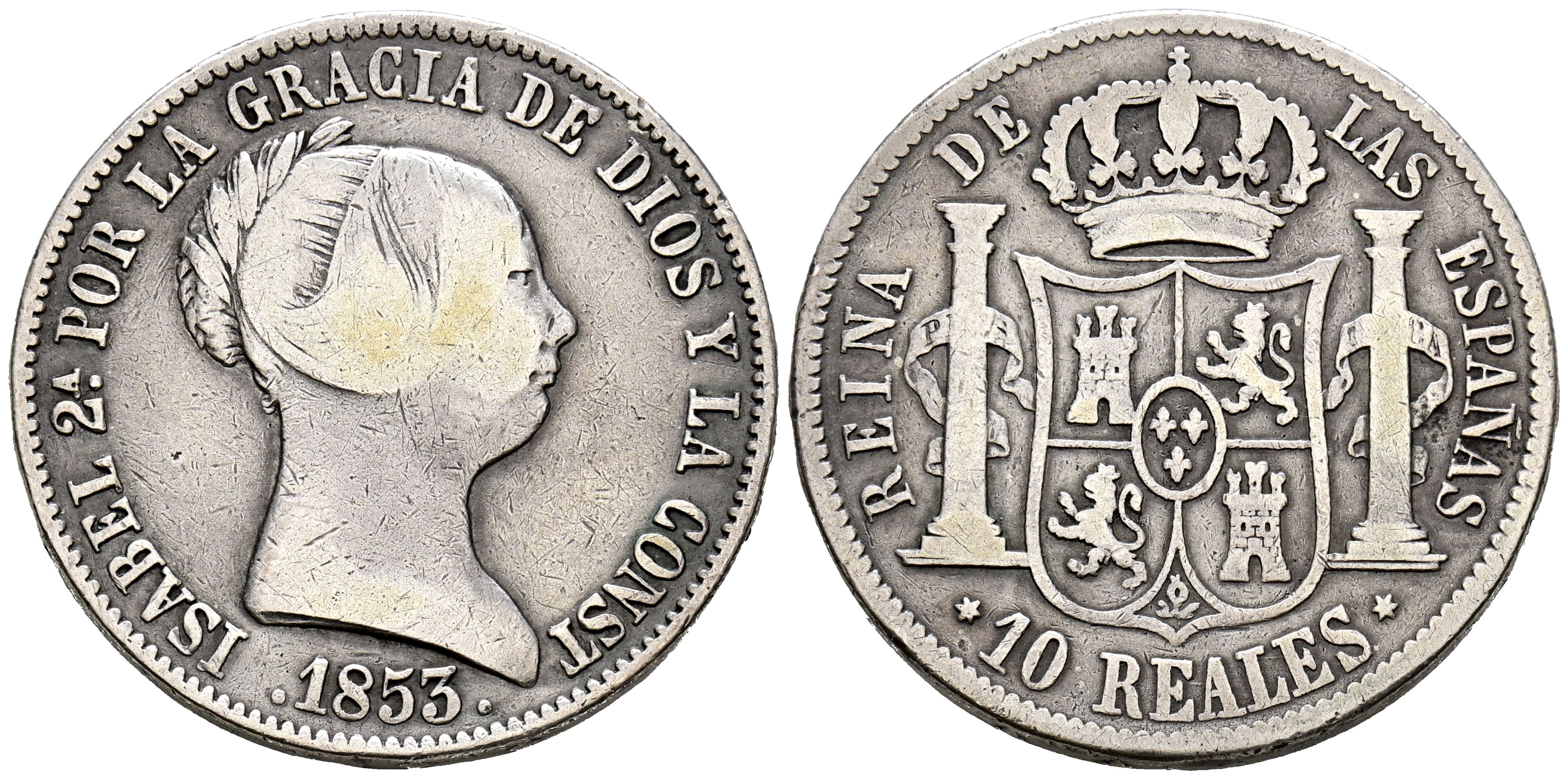 ISABEL II (1833-1868). 10 Reales. (Ar. 12,70g/30mm). 1853. Madrid. (Cal-2019-528). MBC-.