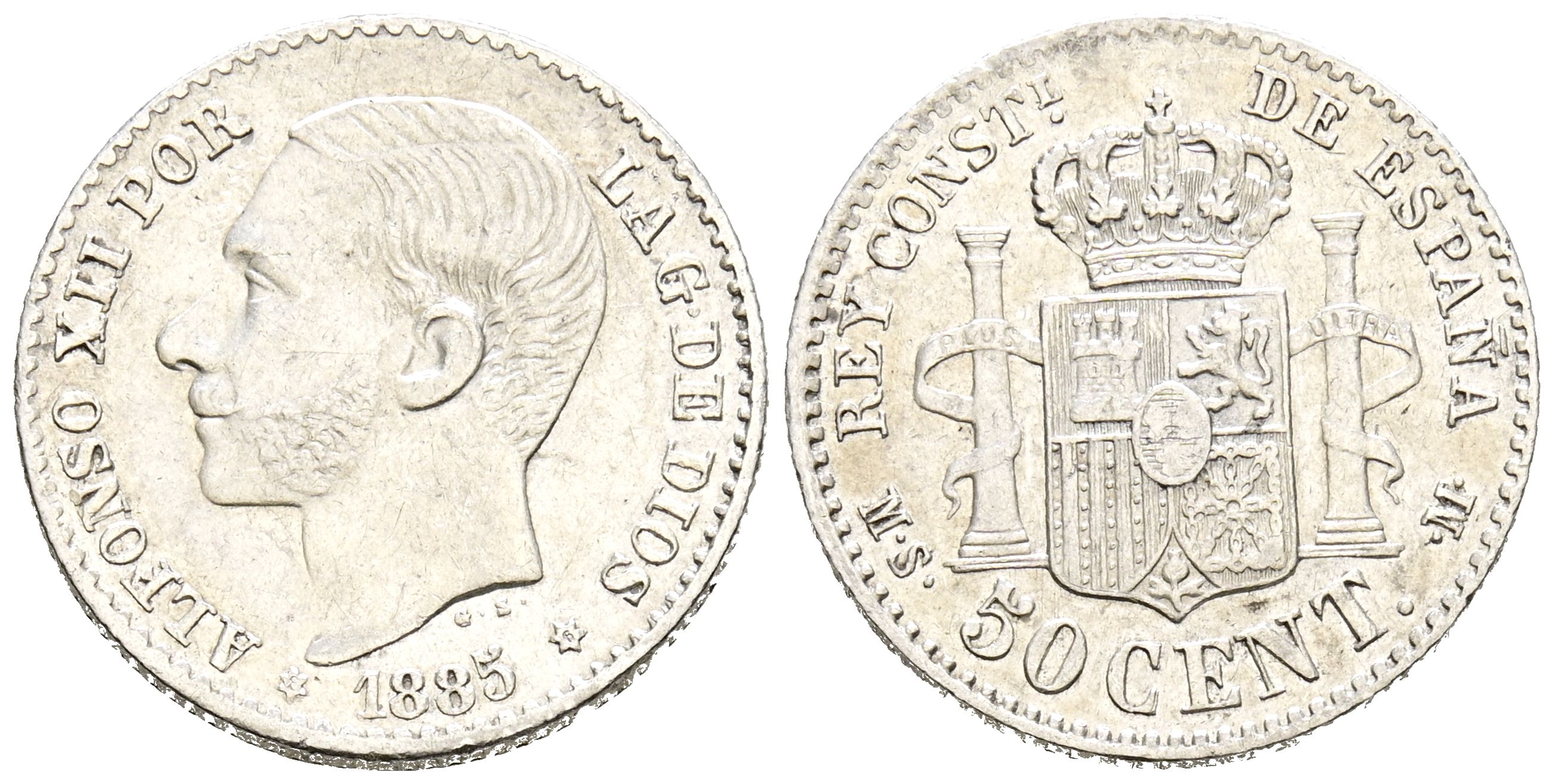 ALFONSO XIII (1885-1931). 50 Céntimos. (Ar. 2,48g/18mm). 1885 *8-6. Madrid MSM. (Cal-2019-14). EBC-. Acuñación póstuma.
