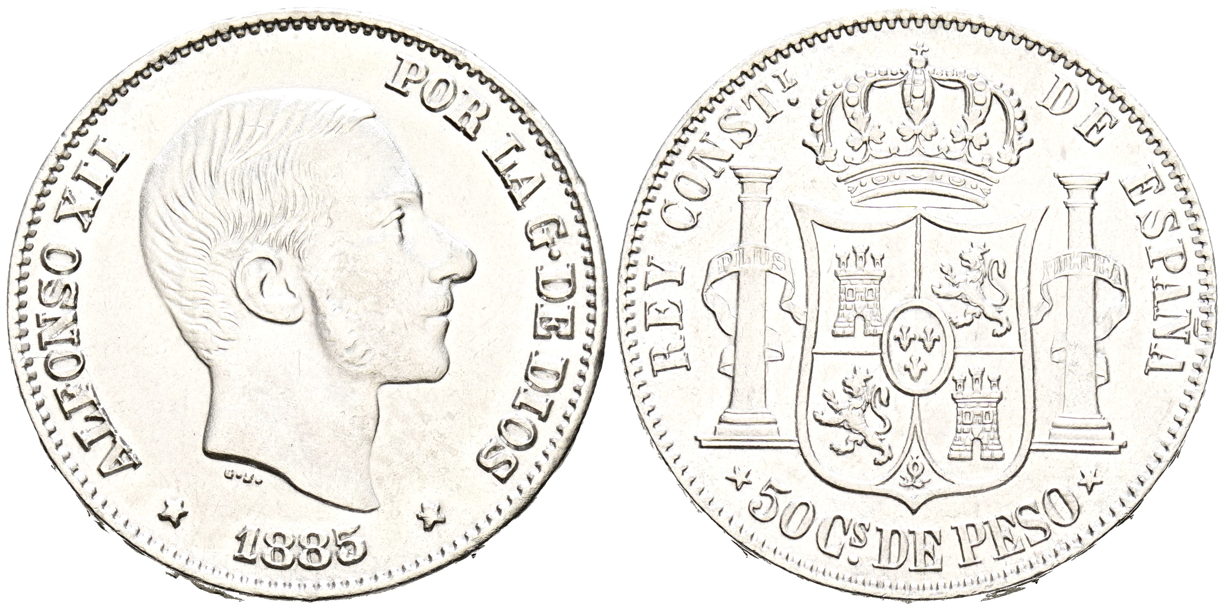 ALFONSO XII (1874-1885). 50 Centavos. (Ar. 13,00g/30mm). 1885. Manila. (Cal-2019-124). EBC-/EBC.