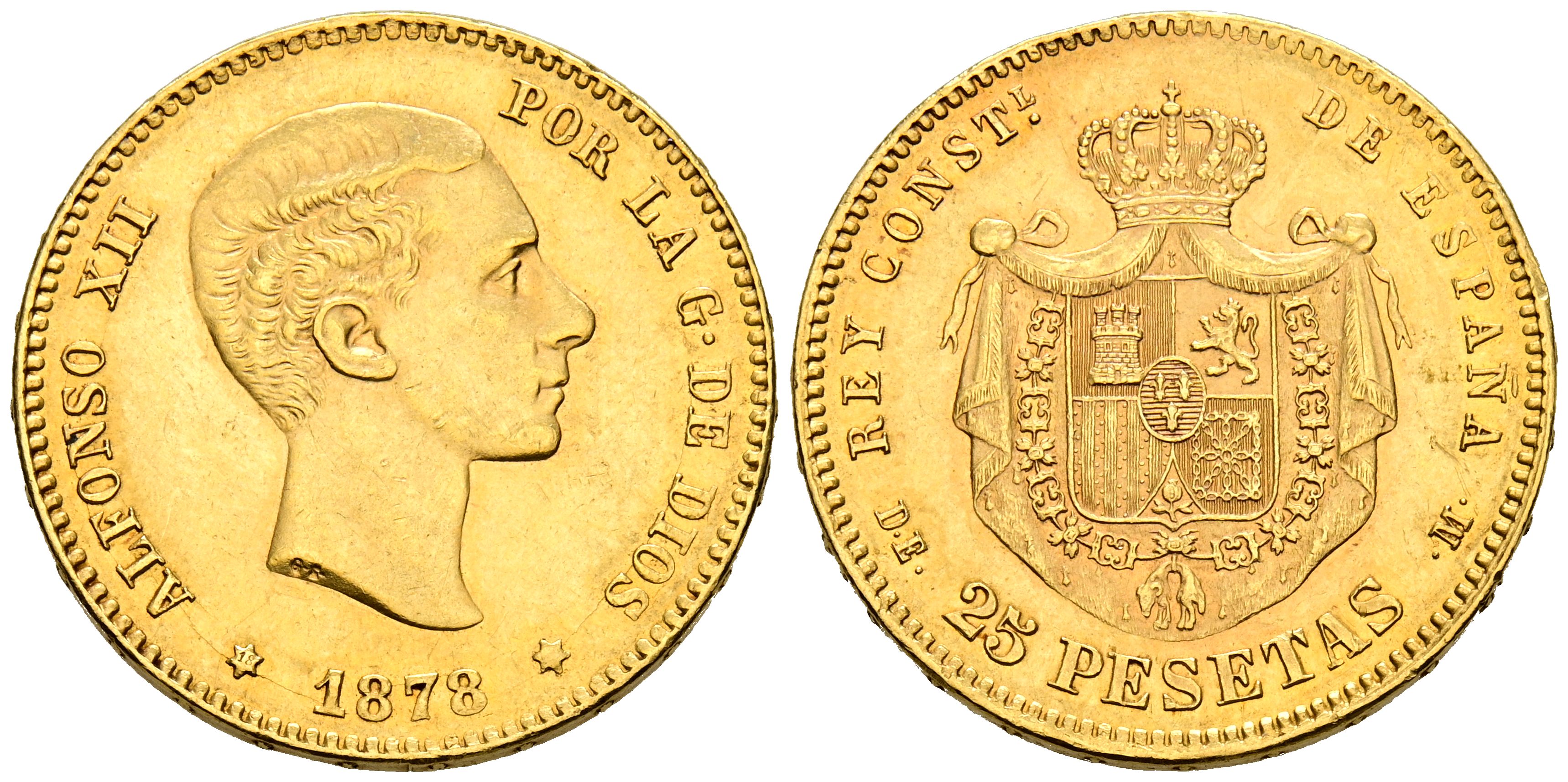 ALFONSO XII (1874-1885). 25 Pesetas. (Au. 8,06g/24mm). 1878 *18-78. Madrid DEM. (Cal-2019-70). EBC-. Leves marquitas.