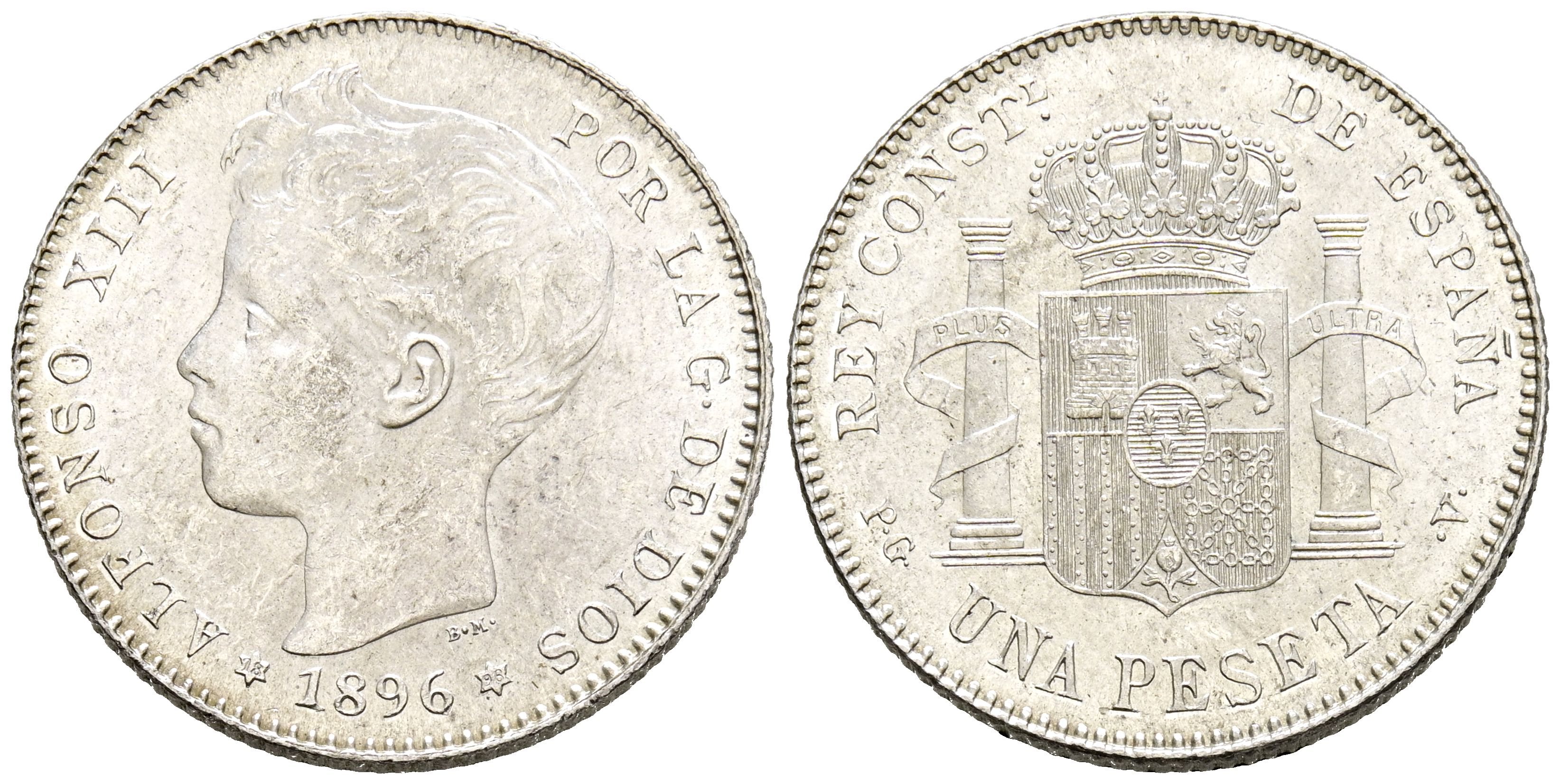 ALFONSO XIII (1885-1931). 1 Peseta. (Ar. 5,11g/23mm). 1896 *18-96. Madrid PGV. (Cal-2019-56). SC. Brillo original.
