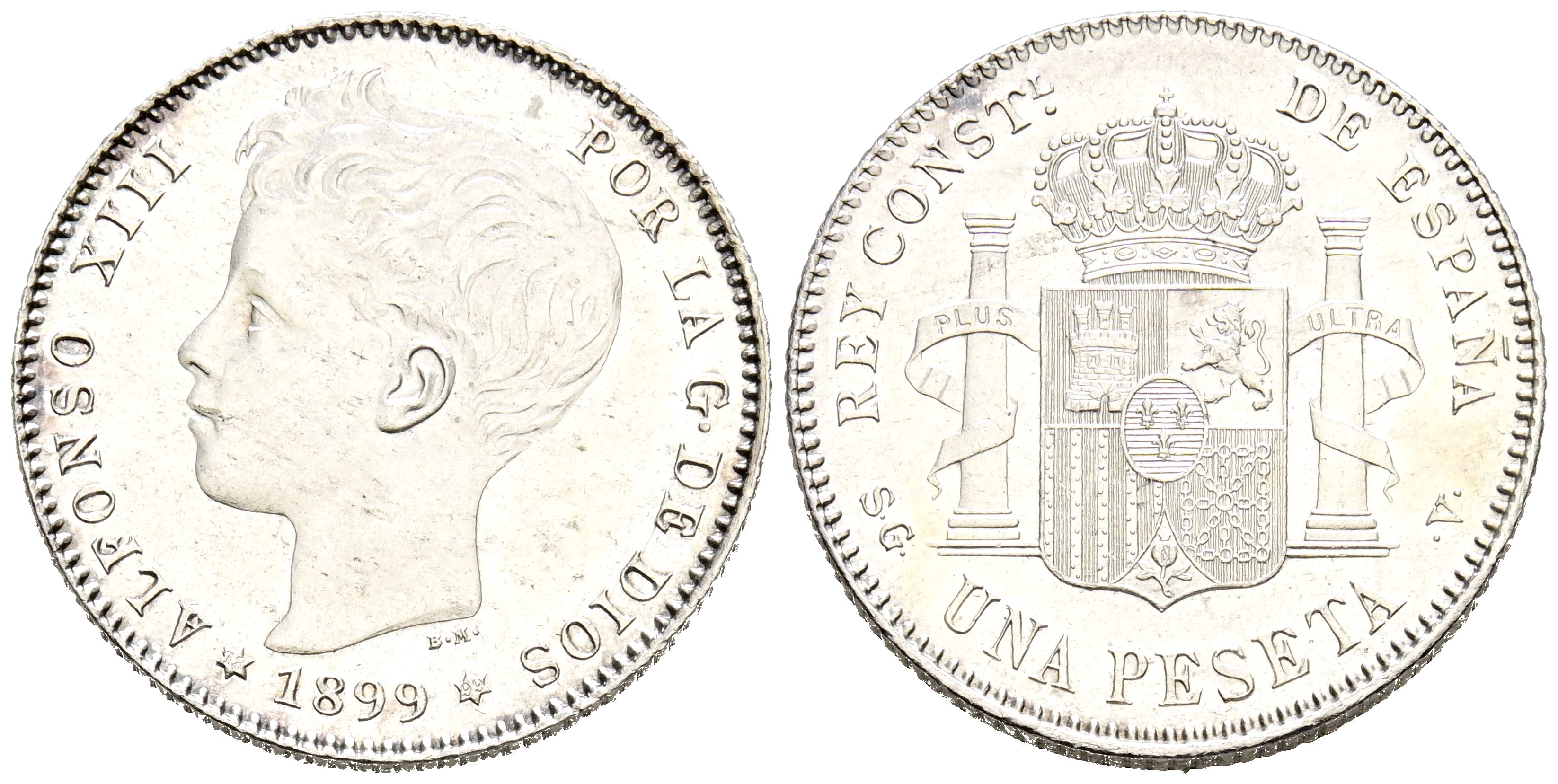 ALFONSO XIII (1885-1931). 1 Peseta. (Ar. 5,07g/23mm). 1899 *18-99. Madrid SGV. (Cal-2019-57). SC-.