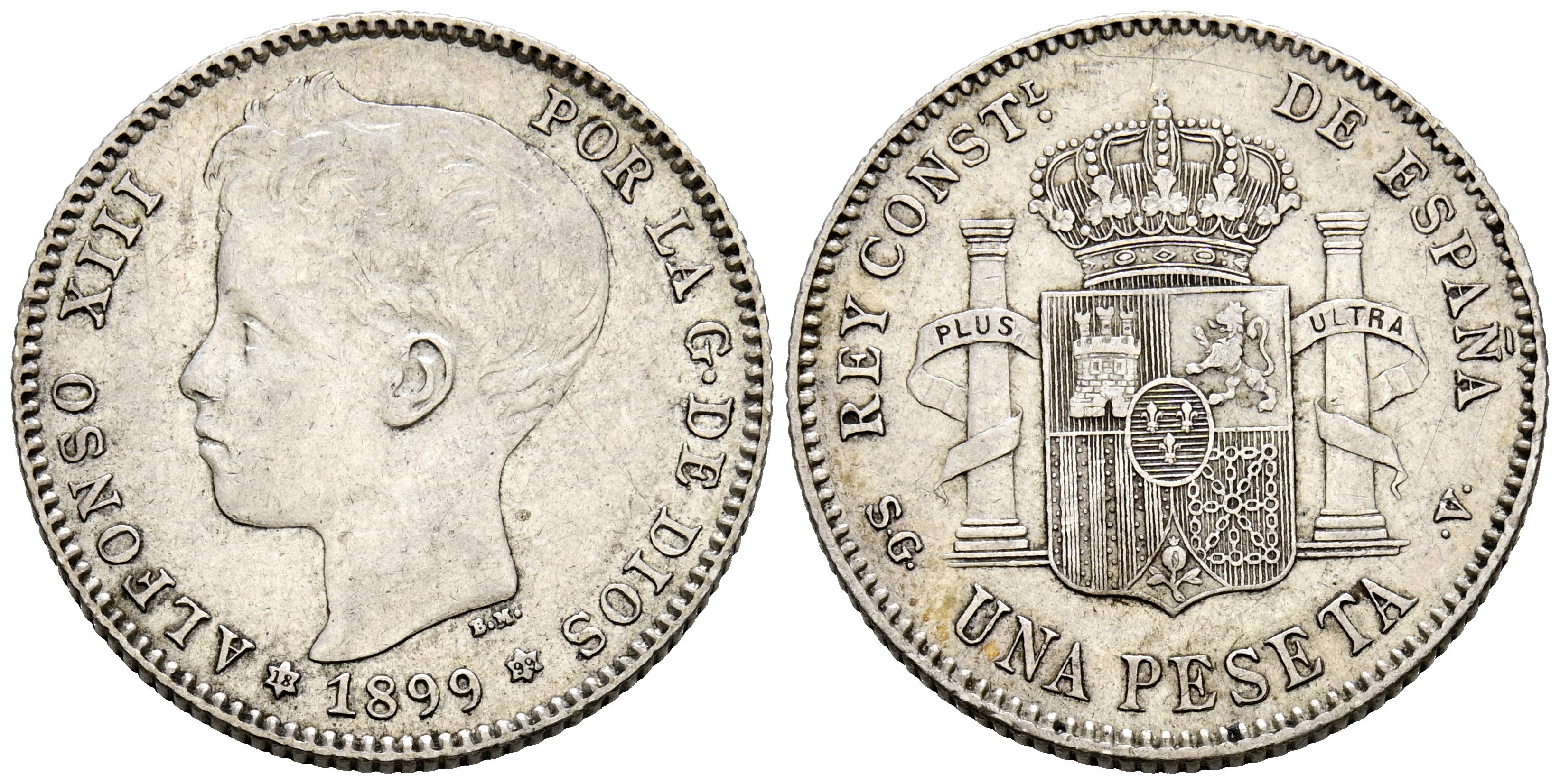 ALFONSO XIII (1885-1931). 1 Peseta. (Ar. 5,25g/23mm). 1899 *18-99. Madrid SGV. (Cal-2019-57). MBC+.