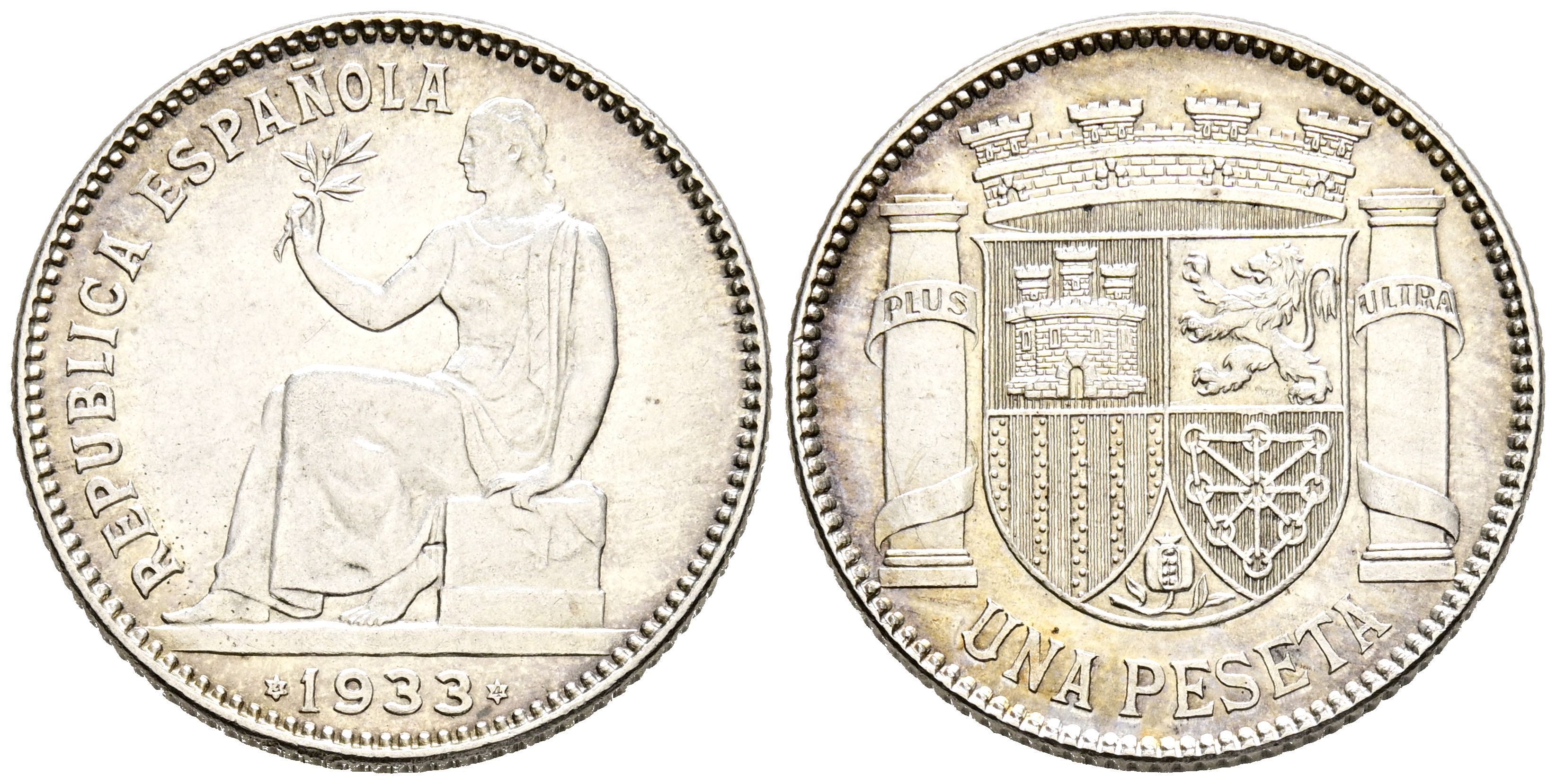 II REPÚBLICA (1931-1939). 1 Peseta. (Ar. 4,98g/23mm). 1933 *3-4. Madrid. (Cal-2019-34). SC-.