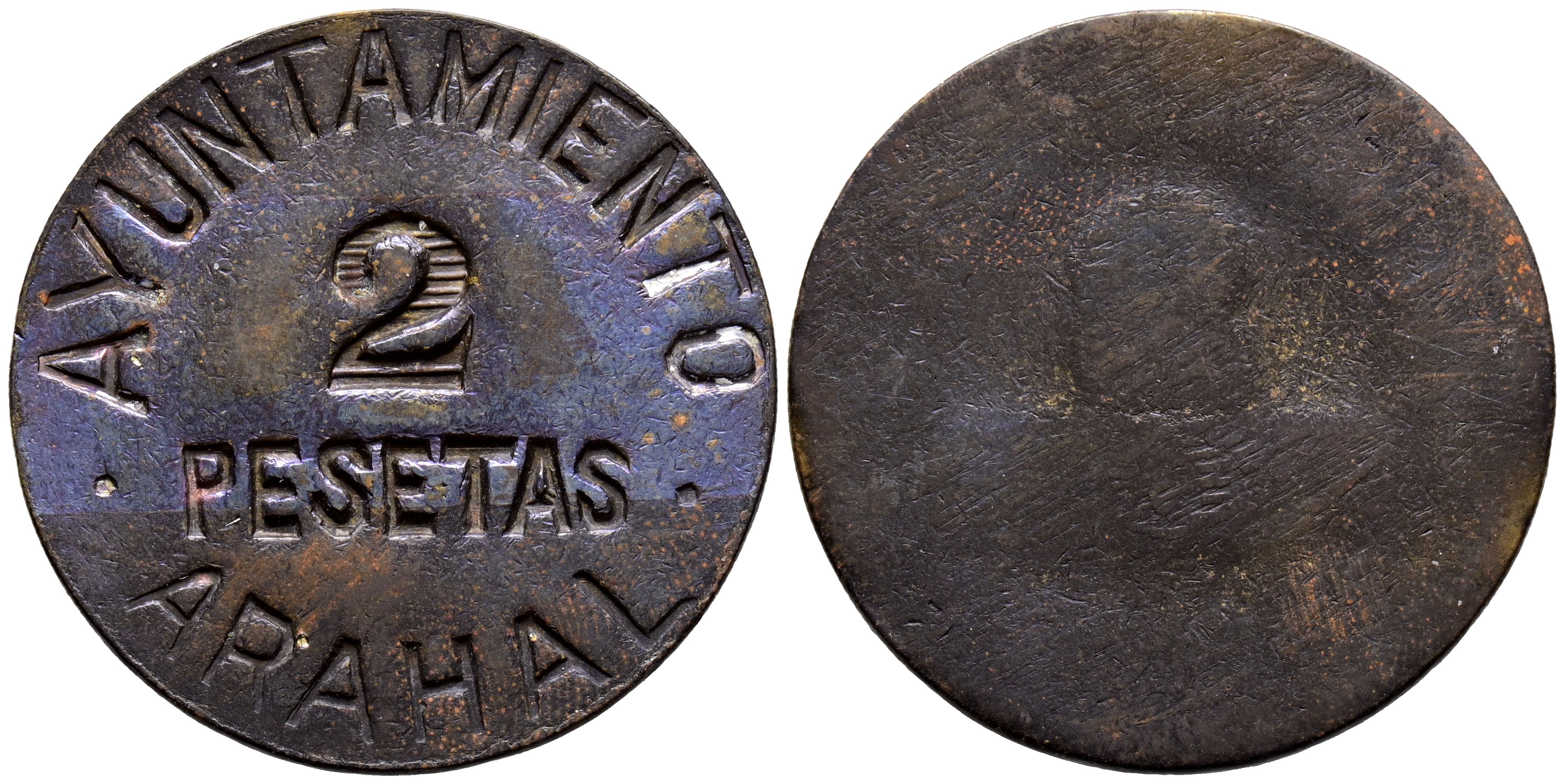 ARAHAL. 2 Pesetas. (Ln. 5,54g/30mm). S/D. Sevilla. (Cal-2019-42). MBC+. Escaso ejemplar.