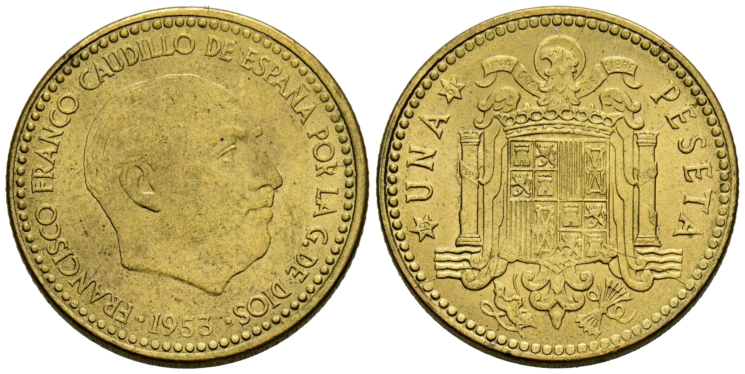 ESTADO ESPAÑOL (1936-1975). 1 Peseta. (Al-Ae. 3,52g/20mm). 1953 *19-61. Madrid. (Cal-2019-60). SC-.