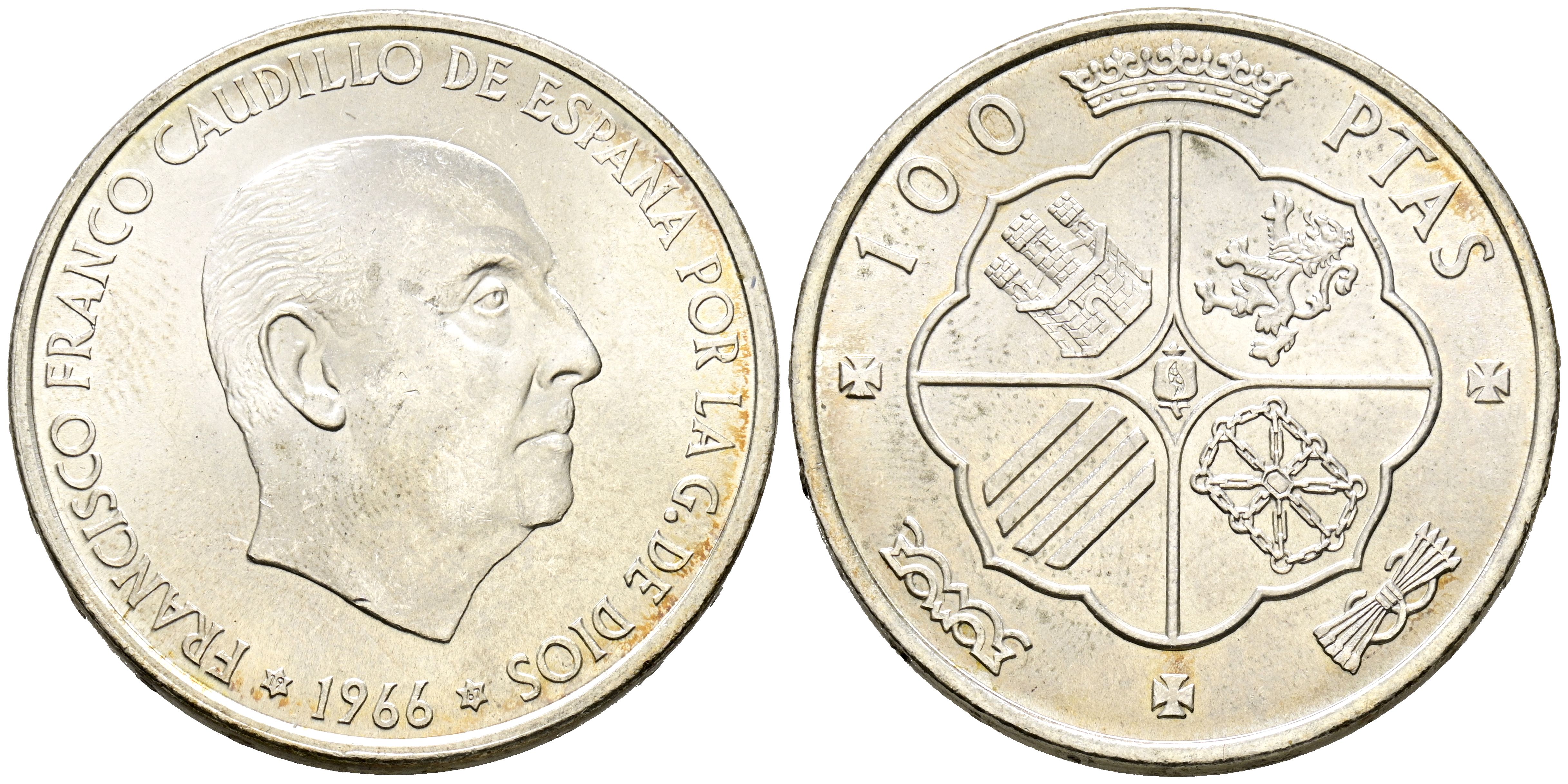 ESTADO ESPAÑOL (1936-1975). 100 Pesetas. (Ar. 18,94g/34mm). 1966 *19-67. Madrid. (Cal-2019-146). SC-.