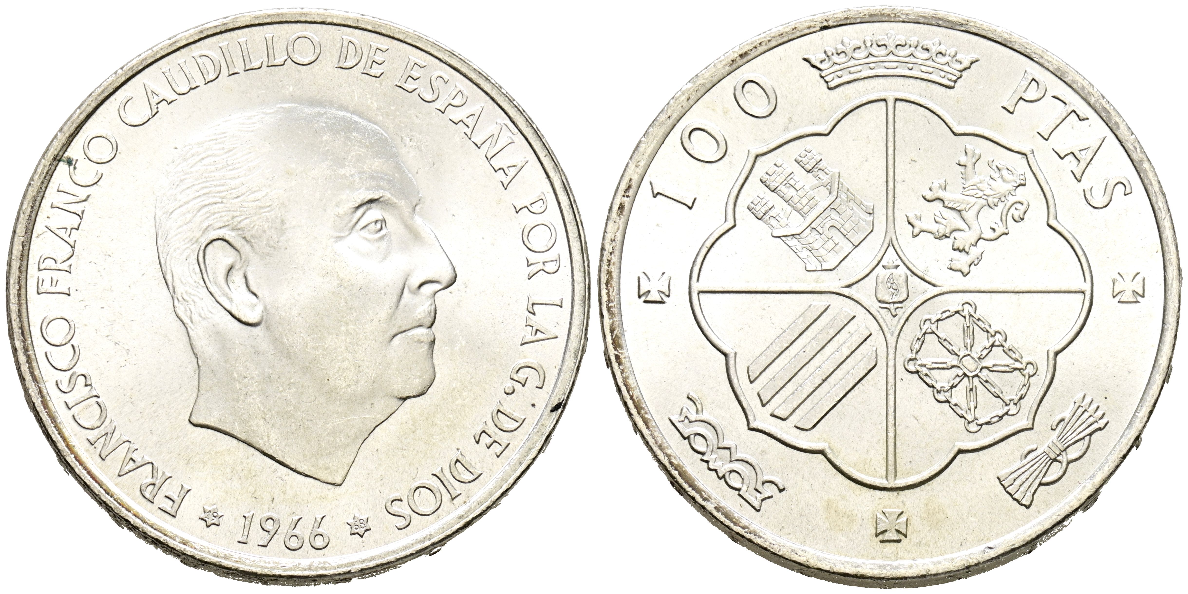 ESTADO ESPAÑOL (1936-1975). 100 Pesetas. (Ar. 18,91g/34mm). 1966 *19-68. Madrid. (Cal-2019-147). SC-.
