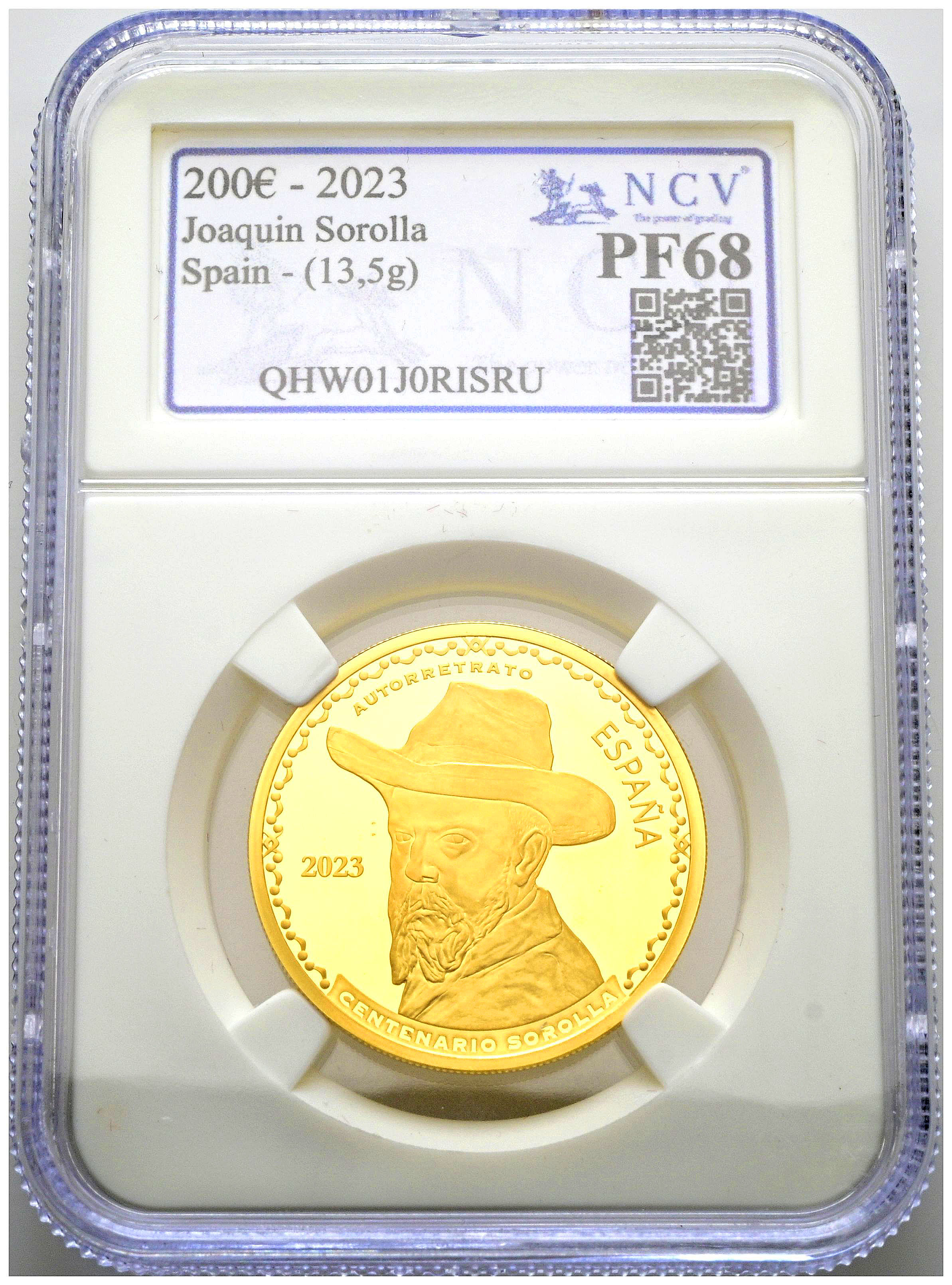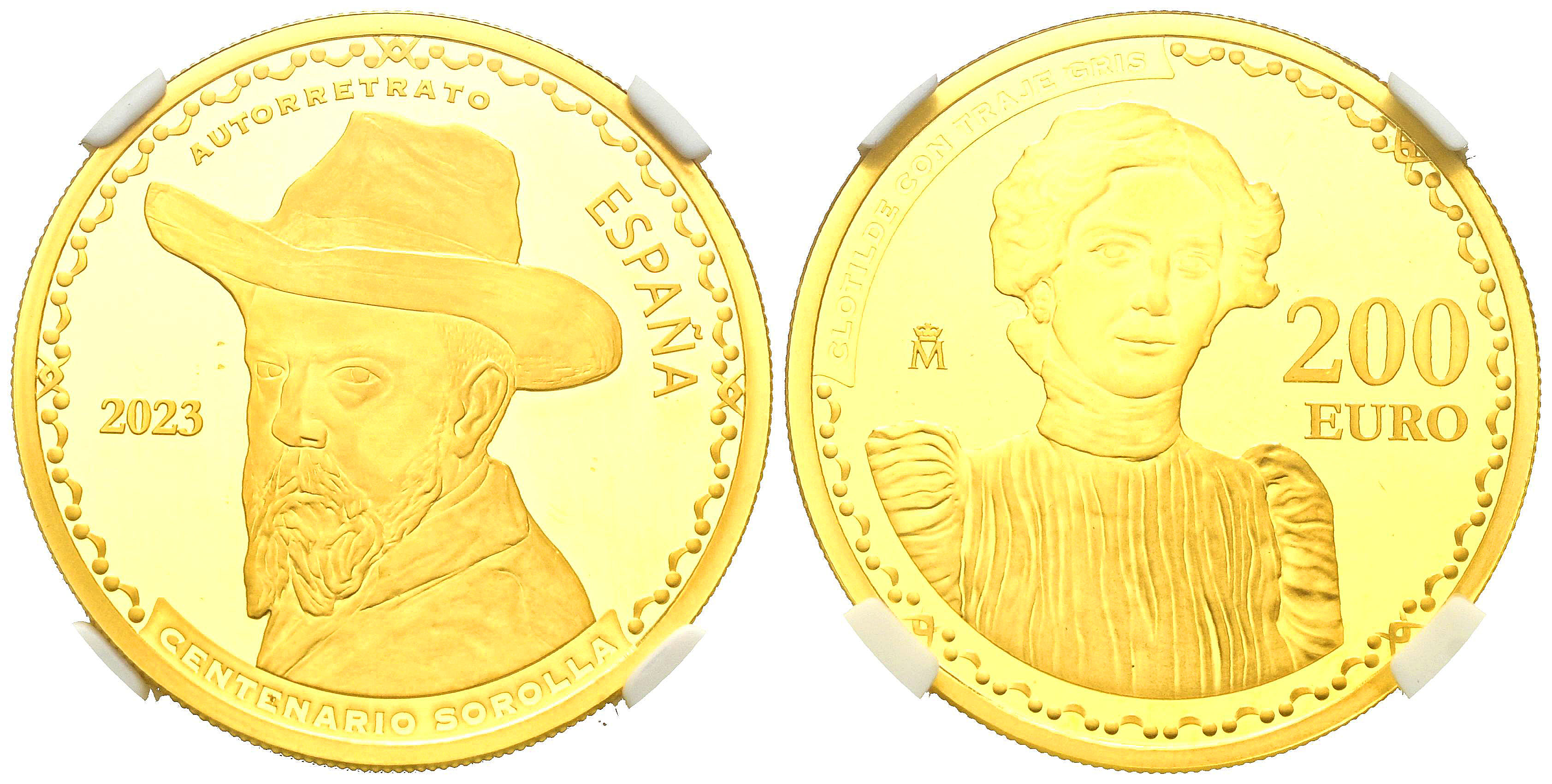 FELIPE VI (2014-?). 200 Euros (Au. 13,50g/30mm). 2023. Joaquín Sorolla. Encapsulada por NCV. PF 68.