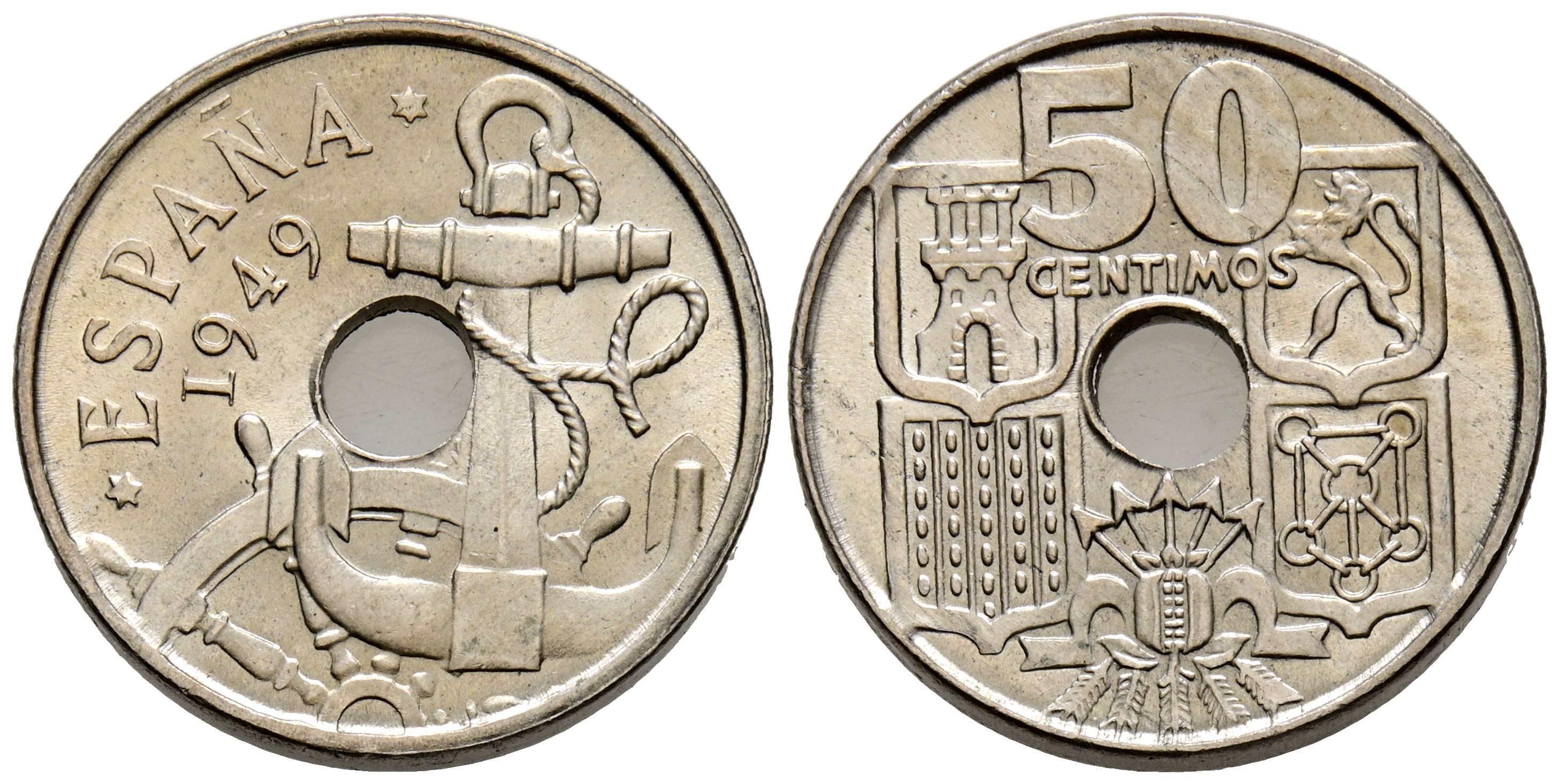 ESTADO ESPAÑOL (1936-1975). 50 Céntimos (Ae-Ni. 4,00g/20mm). 1949. Madrid. (Cal-2019-Tipo 9-var). Sin dígitos en las estrellas. SC.