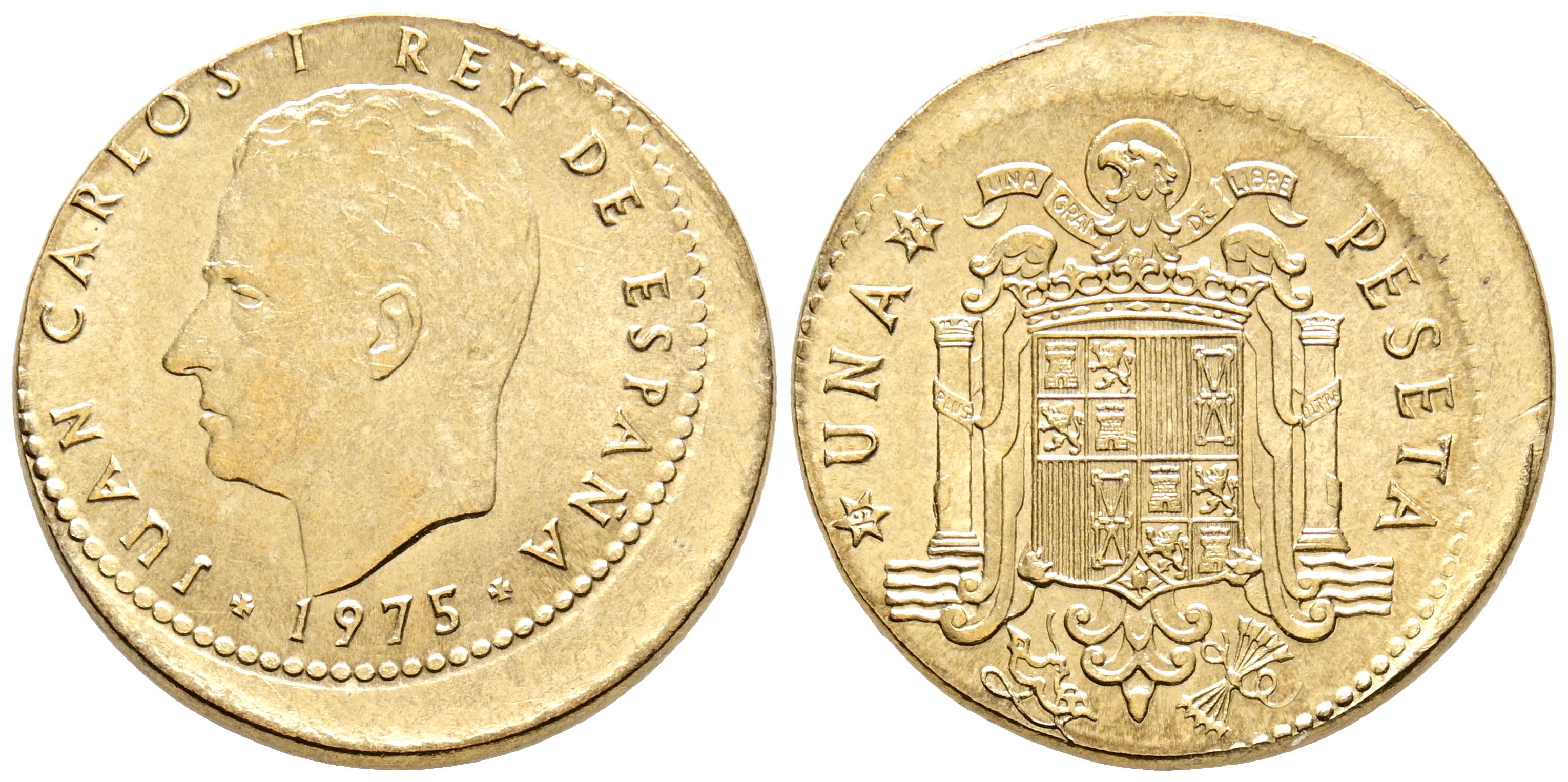 JUAN CARLOS I (1975-2014). 1 Peseta. (Al-Ae. 3,53g /22mm). 1975 *77. Madrid. (Cal-2019-3). Acuñación desplazada: 3mm. SC-.