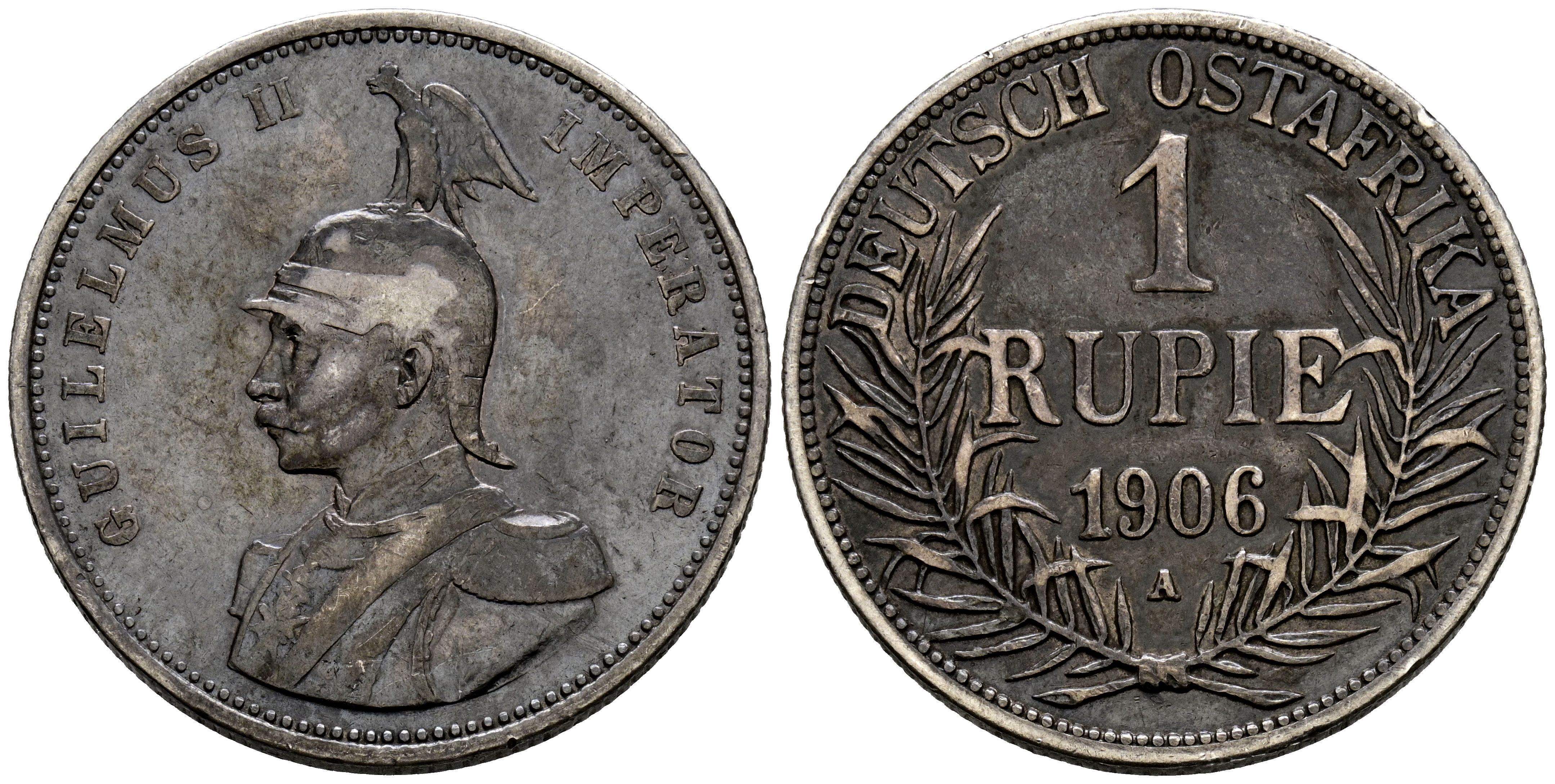 Alemania (Estados del África Oriental). 1 Rupia (Ar. 11,56g/30mm). 1906. Guillermo II Berlín A. MBC. Pátina.