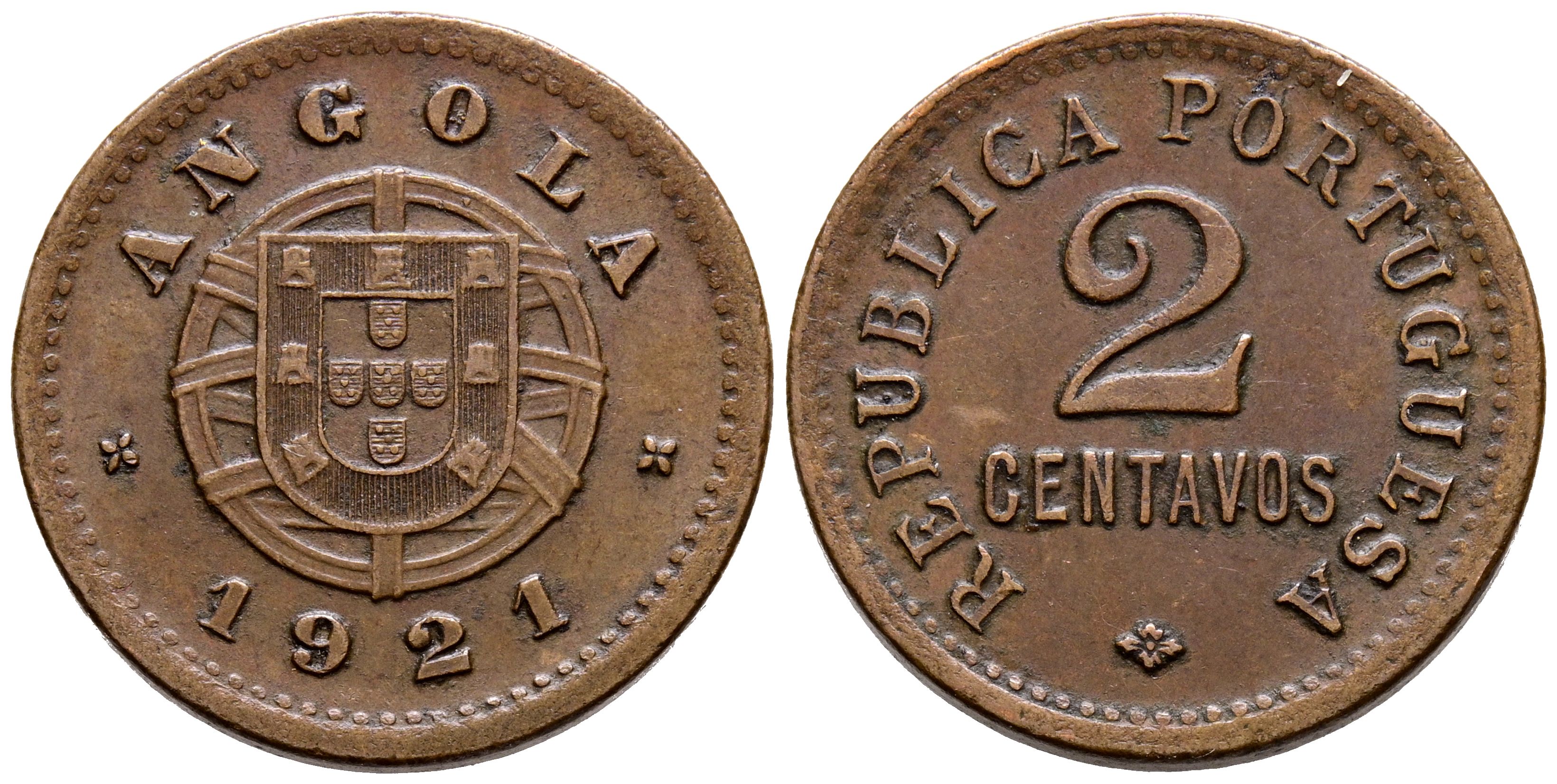 ANGOLA (Portuguesa). 2 Centavos (Ae. 4,80g/23mm). 1921. (Gomes 05.01). MBC+. Escasa.