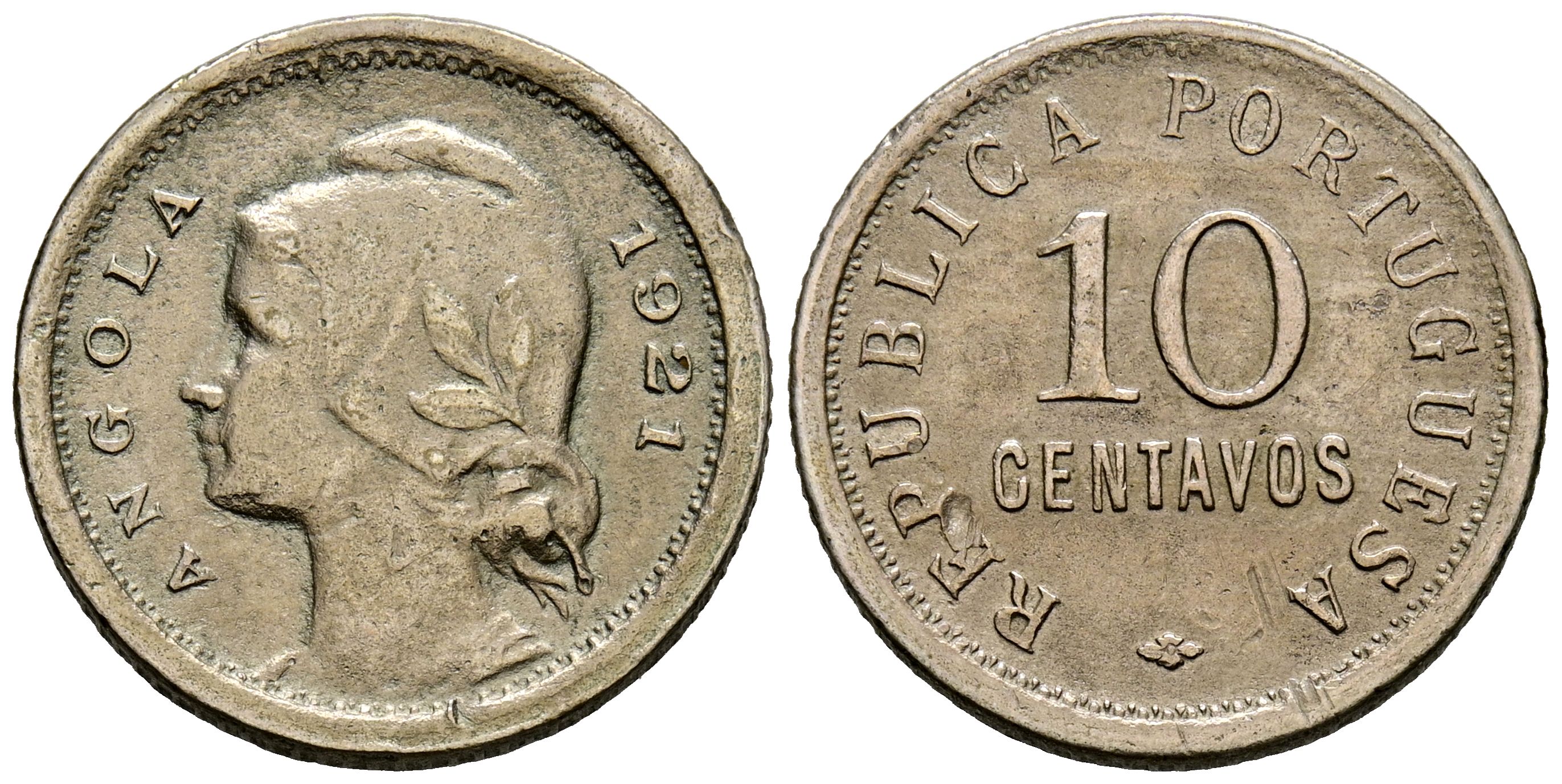 ANGOLA (Portuguesa). 10 Centavos. (Ae-Ni. 3,03g/19mm). 1921. (Km#63). MBC. Escasa.
