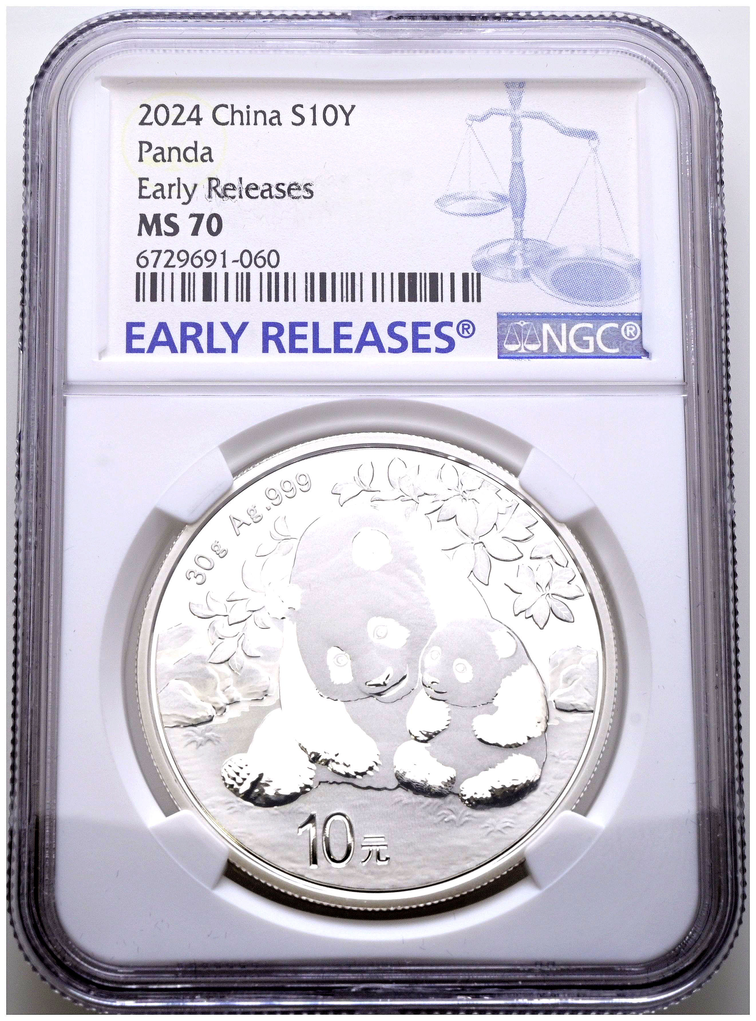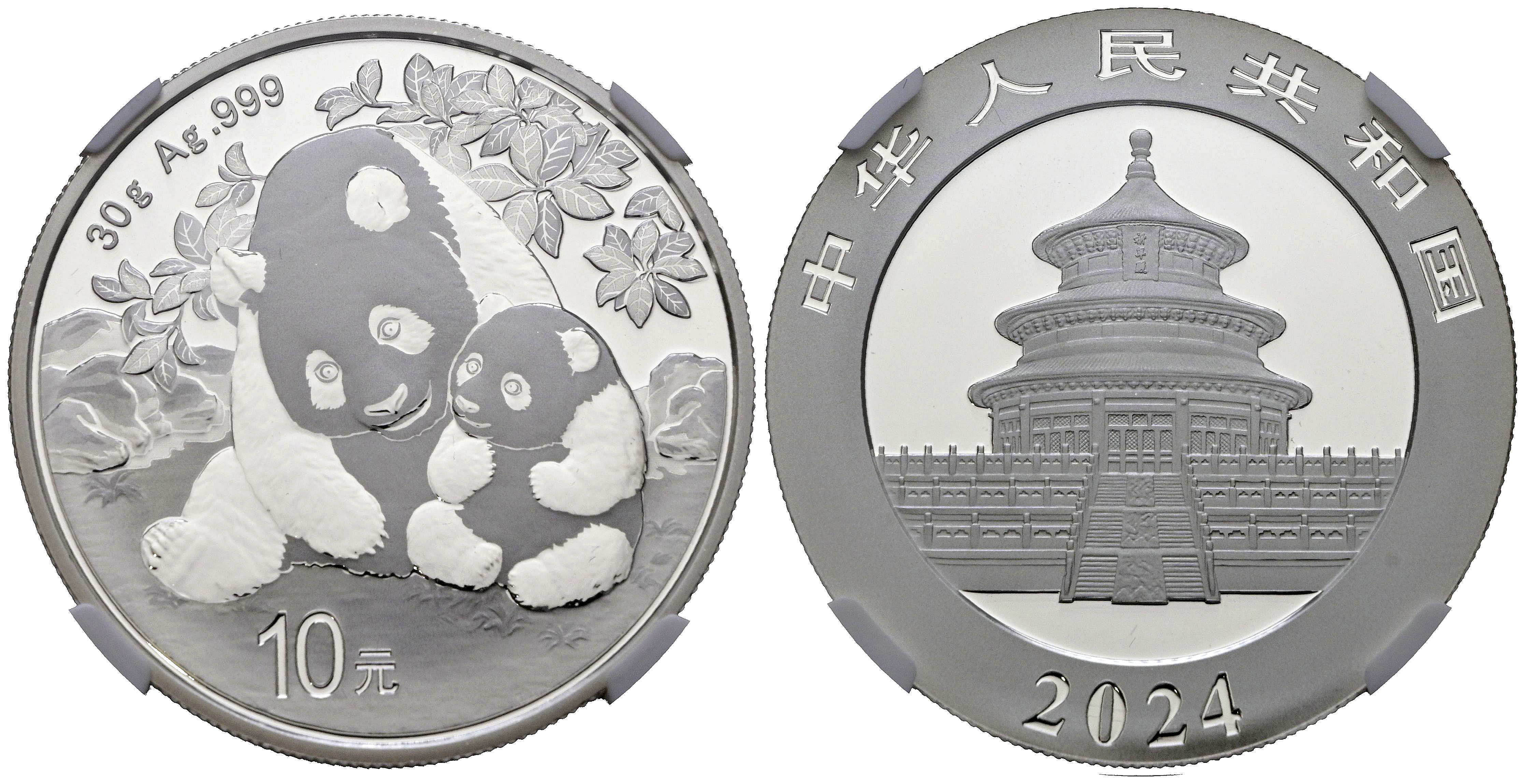 CHINA. 10 Yuan. (Ar. 30,00g/40mm)*. 2024. Serie Panda. Encapsulado por NGC MS 70, Early Releases. *Peso y medidas teóricos.
