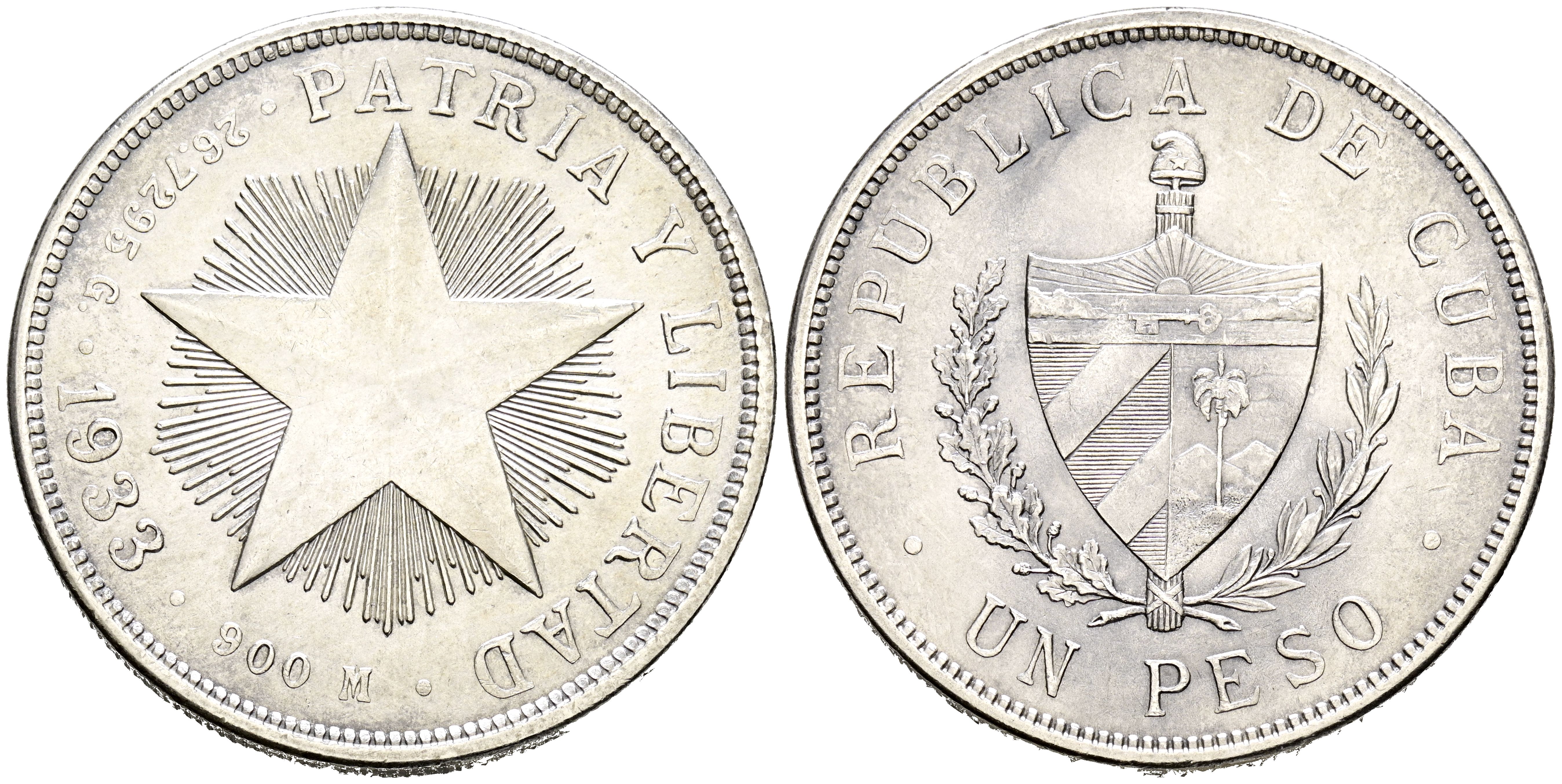 CUBA. 1 Peso. (Ar. 26,69g/38mm). 1933. (Km#15.2). EBC-.