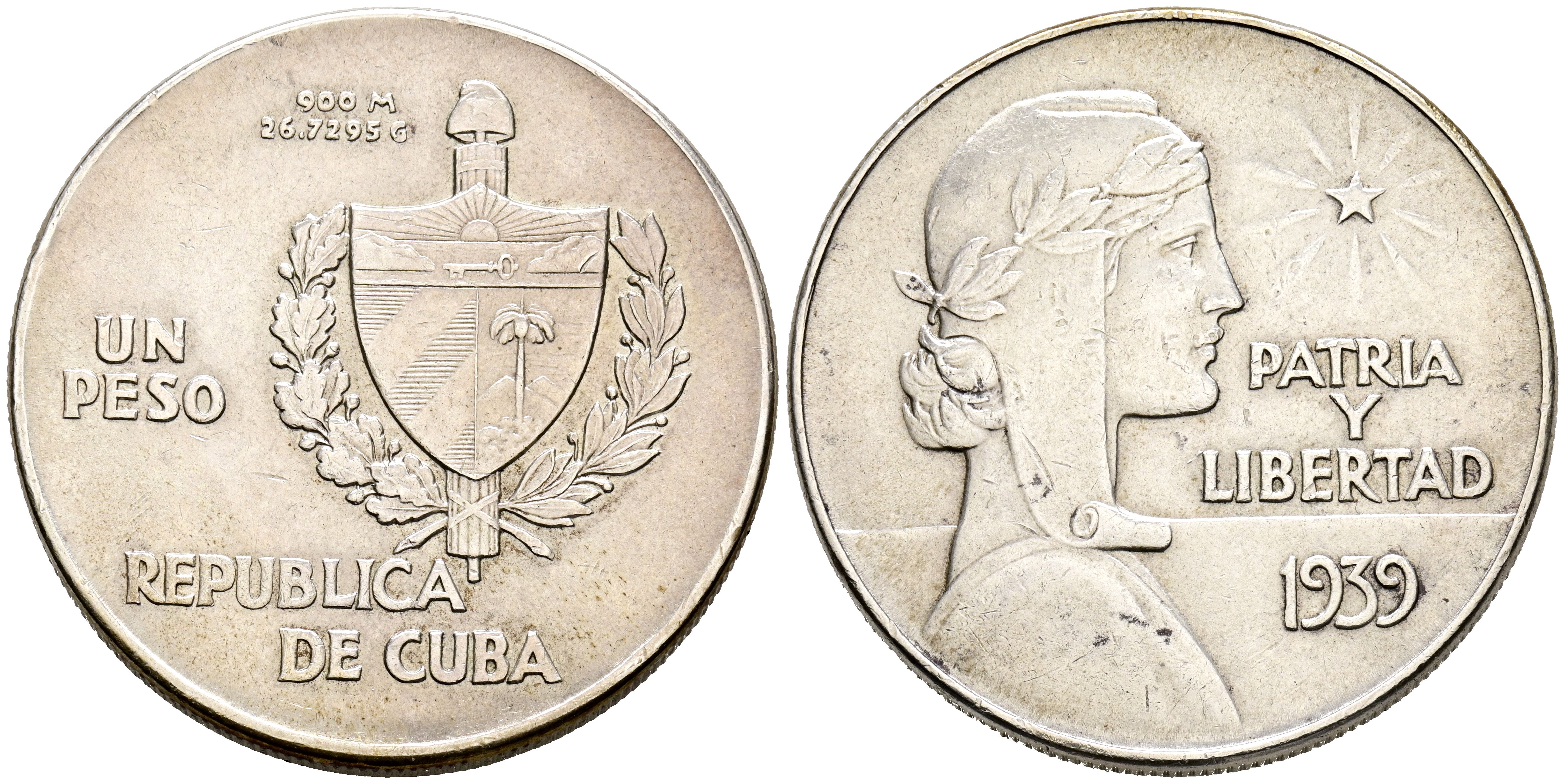 CUBA. 1 Peso. (Ar. 26,80g/33mm). 1939. (Km#20). MBC+. Escasa.