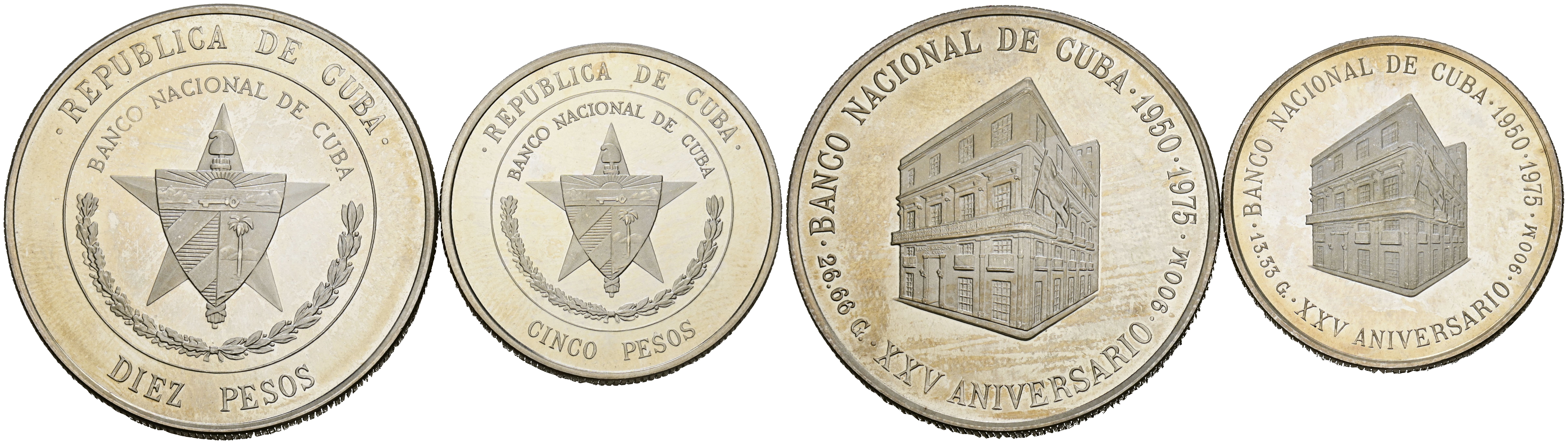 CUBA. Pareja de 5 y 10 Pesos. 1975. Banco Nacional de Cuba. (Km#10/Km#36). PROOF.