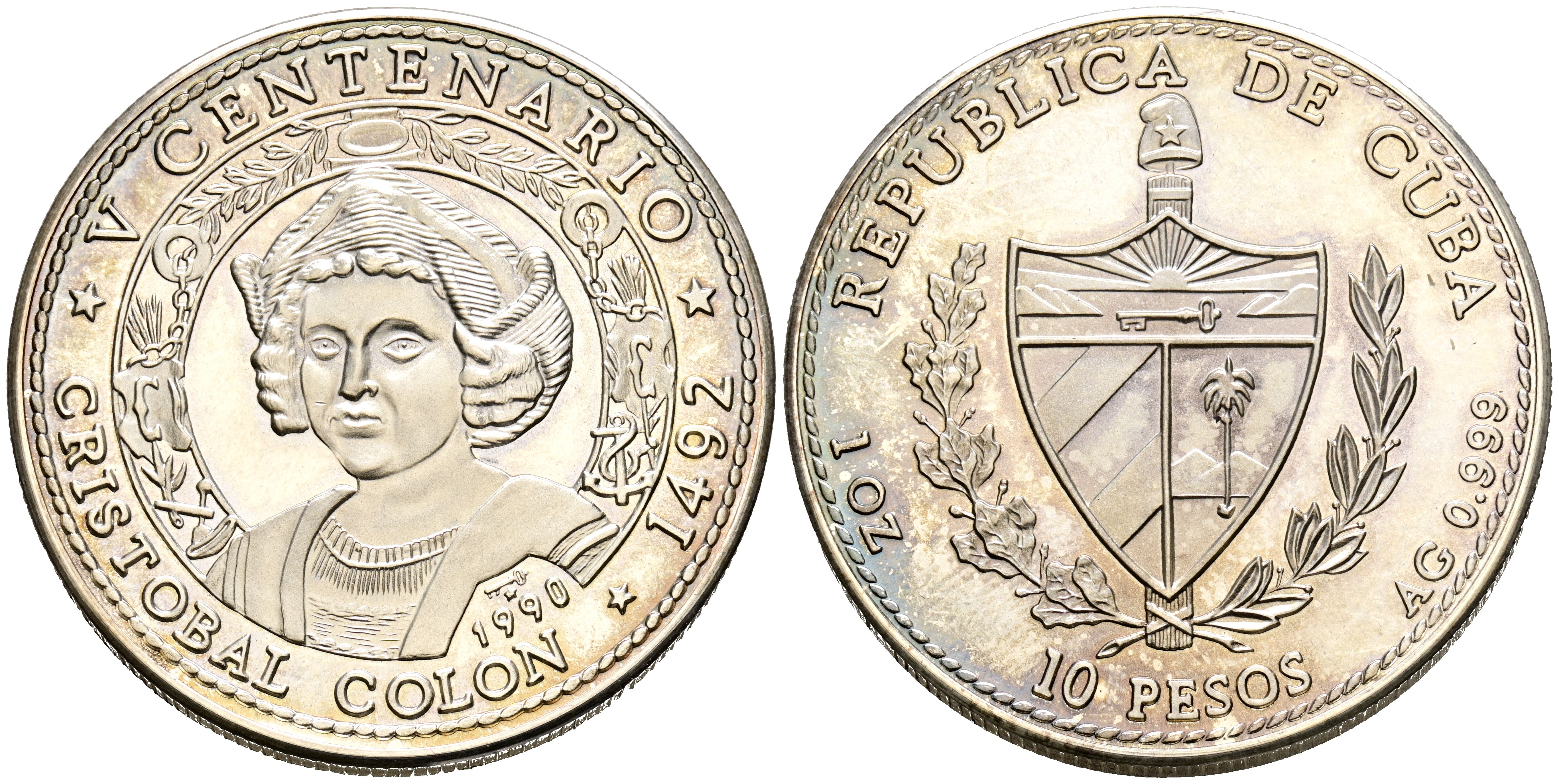 CUBA. 10 Pesos (Ar. 31,03g/33mm). 1990. Cristobal Colón. Serie V Centenario. (Km#265). PROOF. Tirada de 5000 ejemplares.