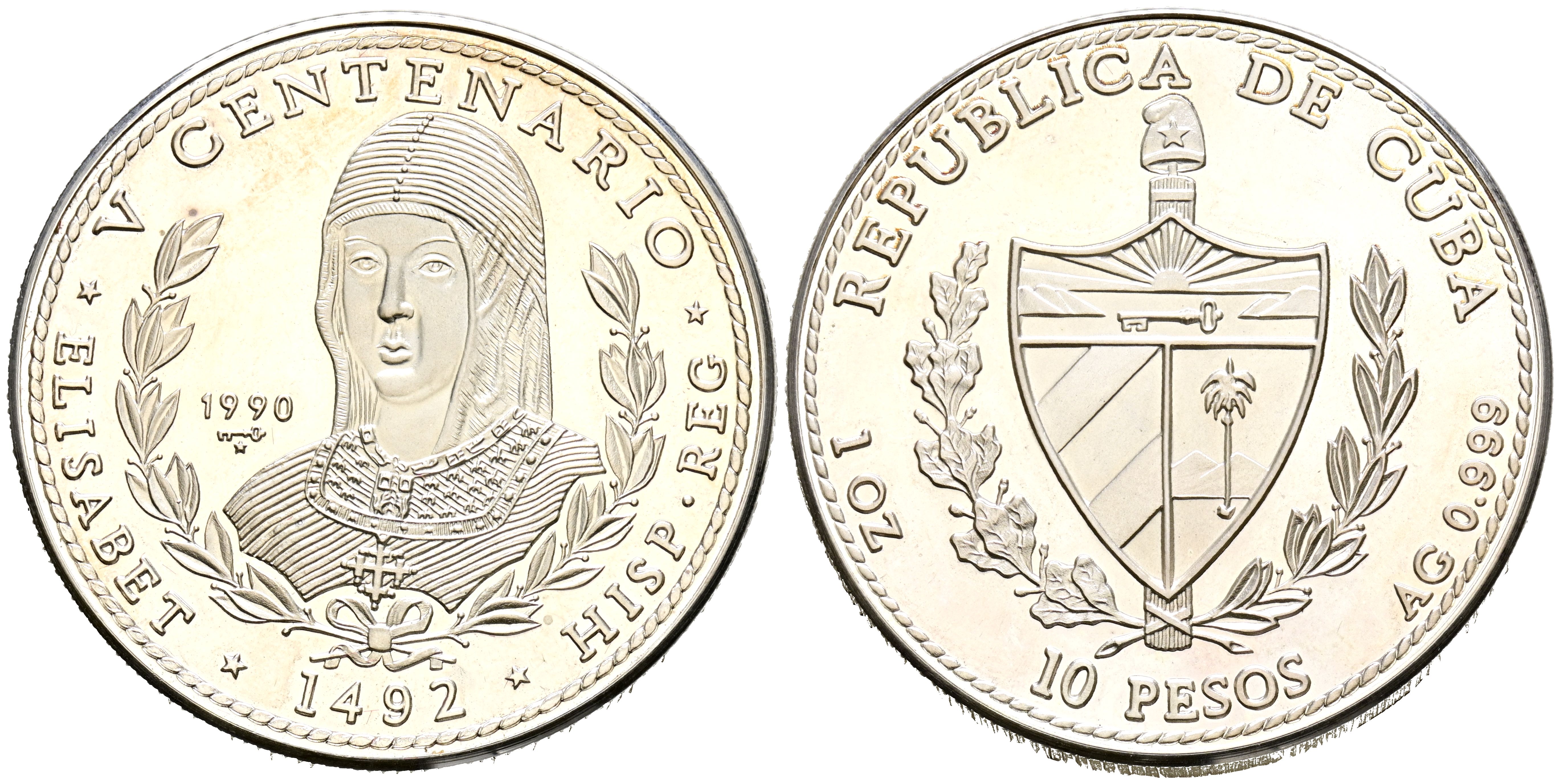 CUBA. 10 Pesos (Ar. 31,03g/33mm). 1990. Isabel la Católica. Serie V Centenario. (Km#264). PROOF. Tirada de 5000 ejemplares.