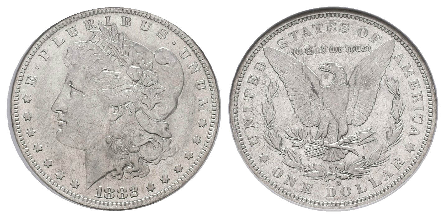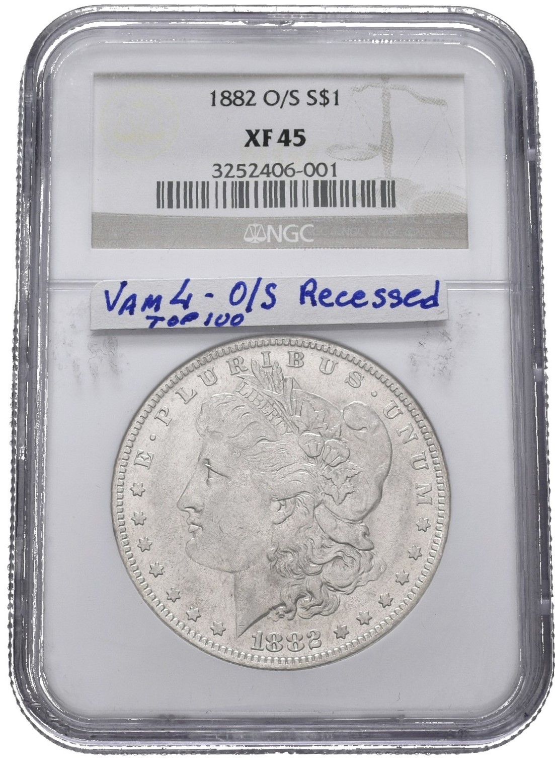 ESTADOS UNIDOS. 1 Dollar (Ar. 26,73g/38mm)*. 1882. Nueva Orleans/San Francisco O/S. (Km#110). XF 45. Encapsulado por NGC *Peso y medida teórico.