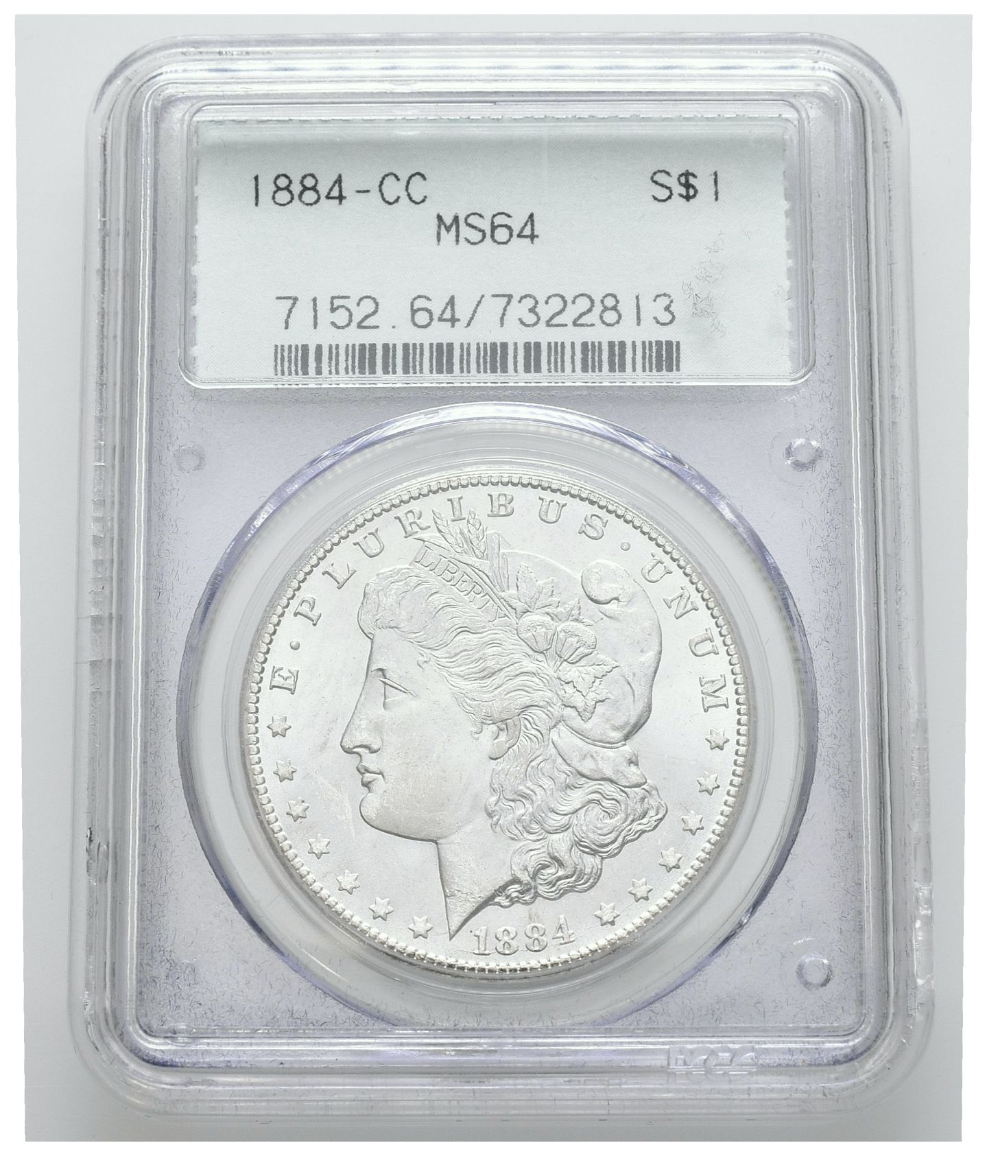ESTADOS UNIDOS. 1 Dollar (Ar. 26,73g/38mm)*. 1884. Carson City CC. (Km#110). Encapsulado por PCGS MS64. *Peso y medida teórico.