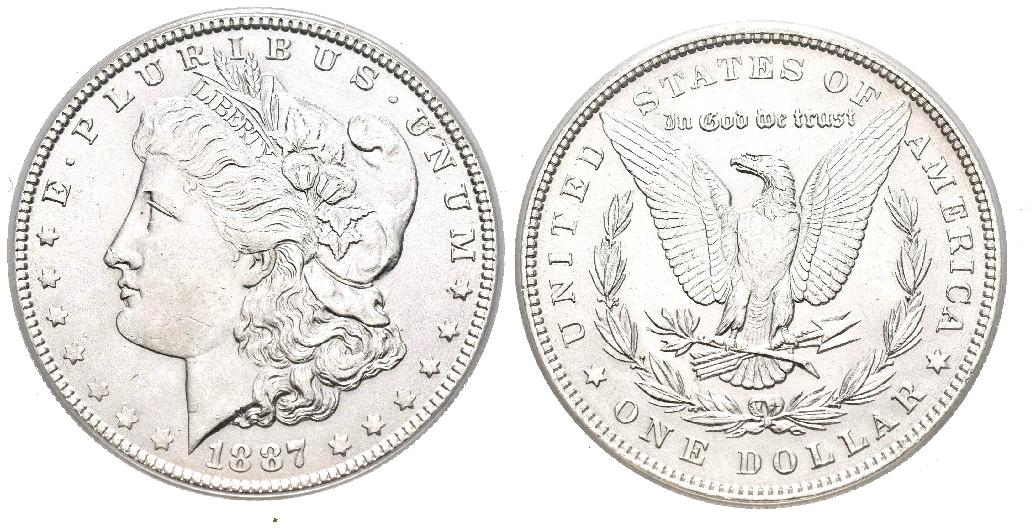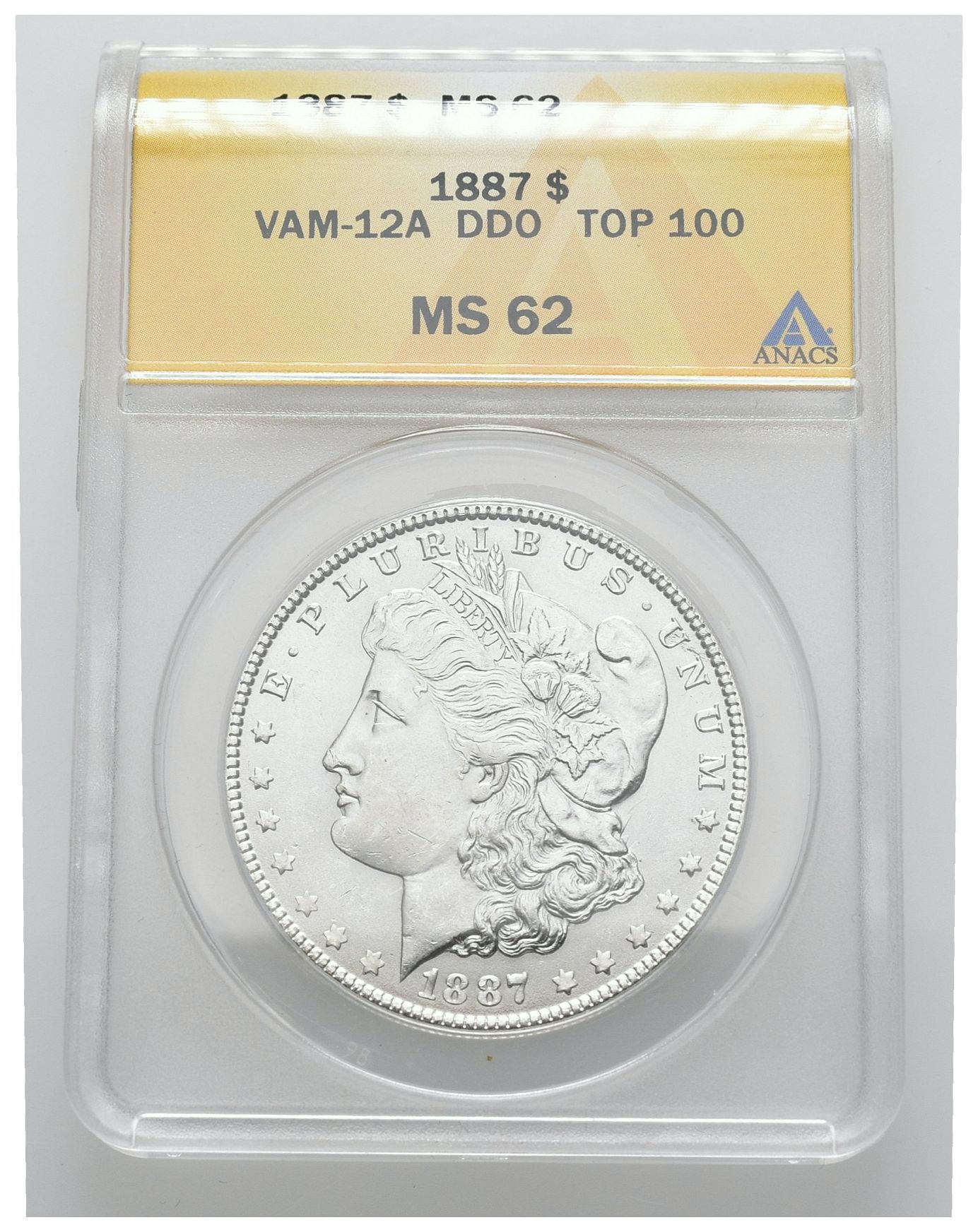 ESTADOS UNIDOS. 1 Dollar (Ar. 26,73g/38mm)*. 1887. Philadelphia. VAM-12 A. DDO. TOP 100. (Km#110). Encapsulado por ANACS MS62. *Peso y medida teórico.