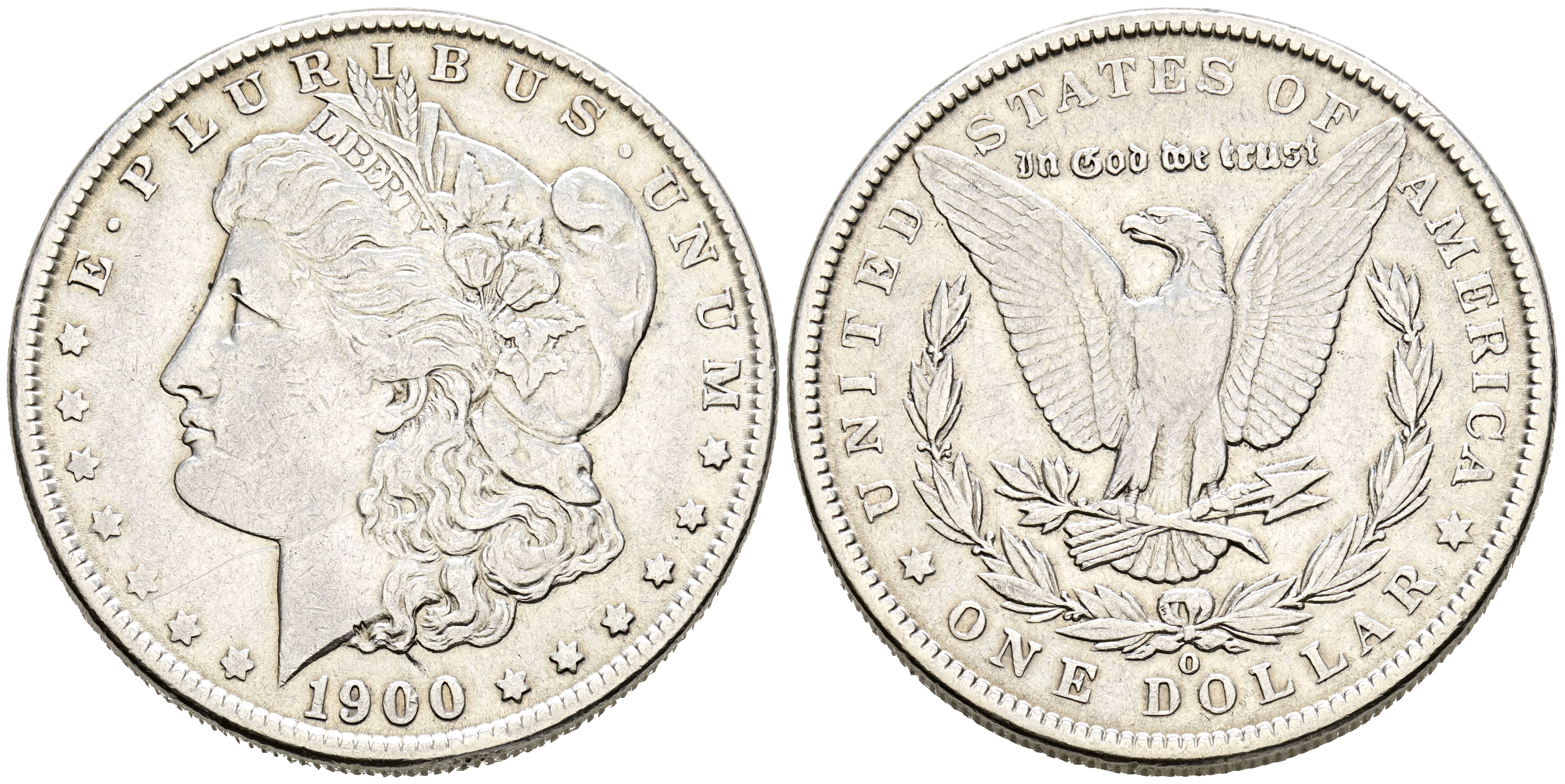 ESTADOS UNIDOS. 1 Dollar. (Ar. 26,53g/38mm). 1900. Nueva Orleans O (Km#110). MBC. Limpiada.