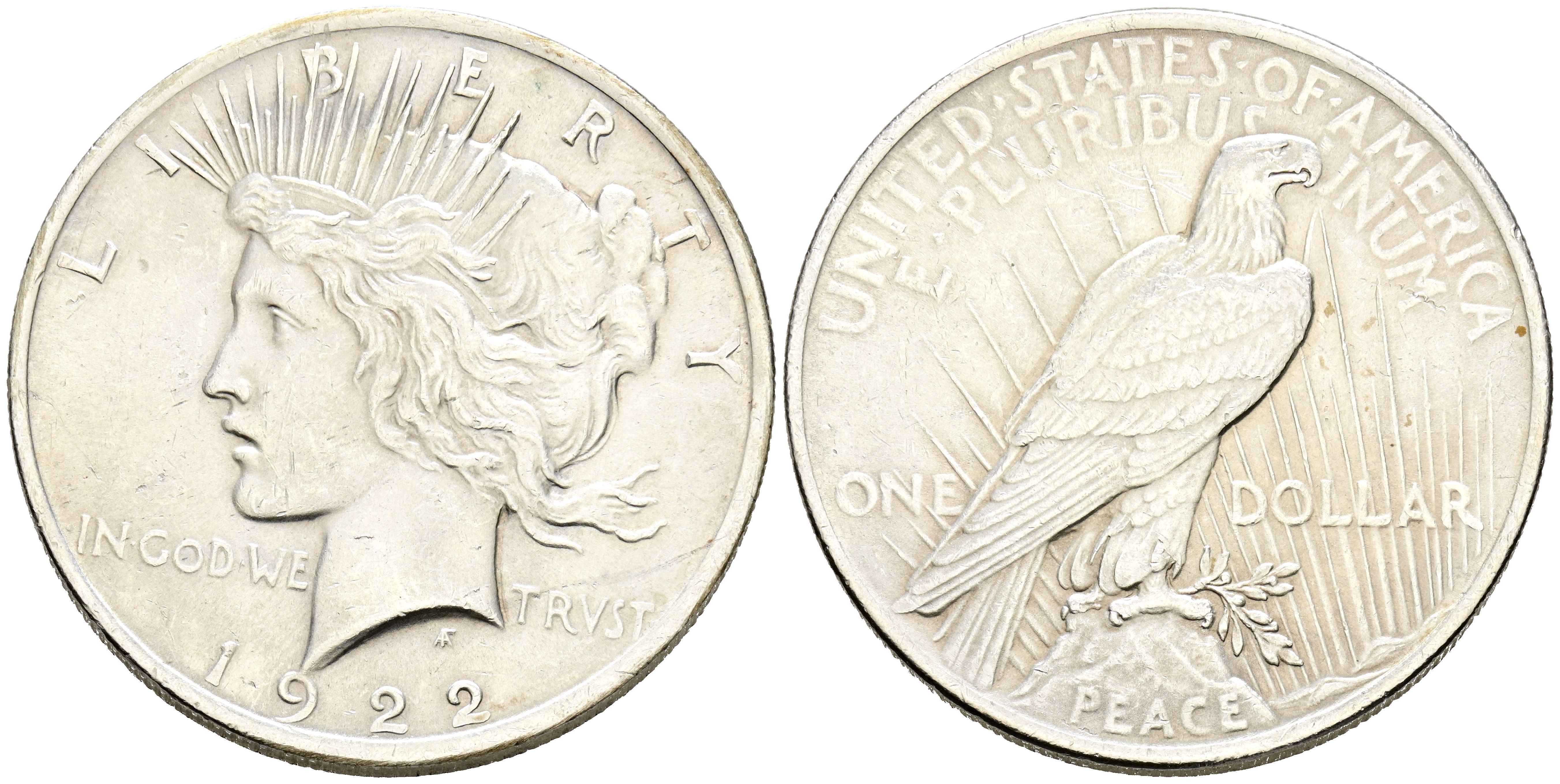 ESTADOS UNIDOS. 1 Dollar. (Ar. 26,73g/38mm). 1922. Philadelphia. (Km#150). MBC+.
