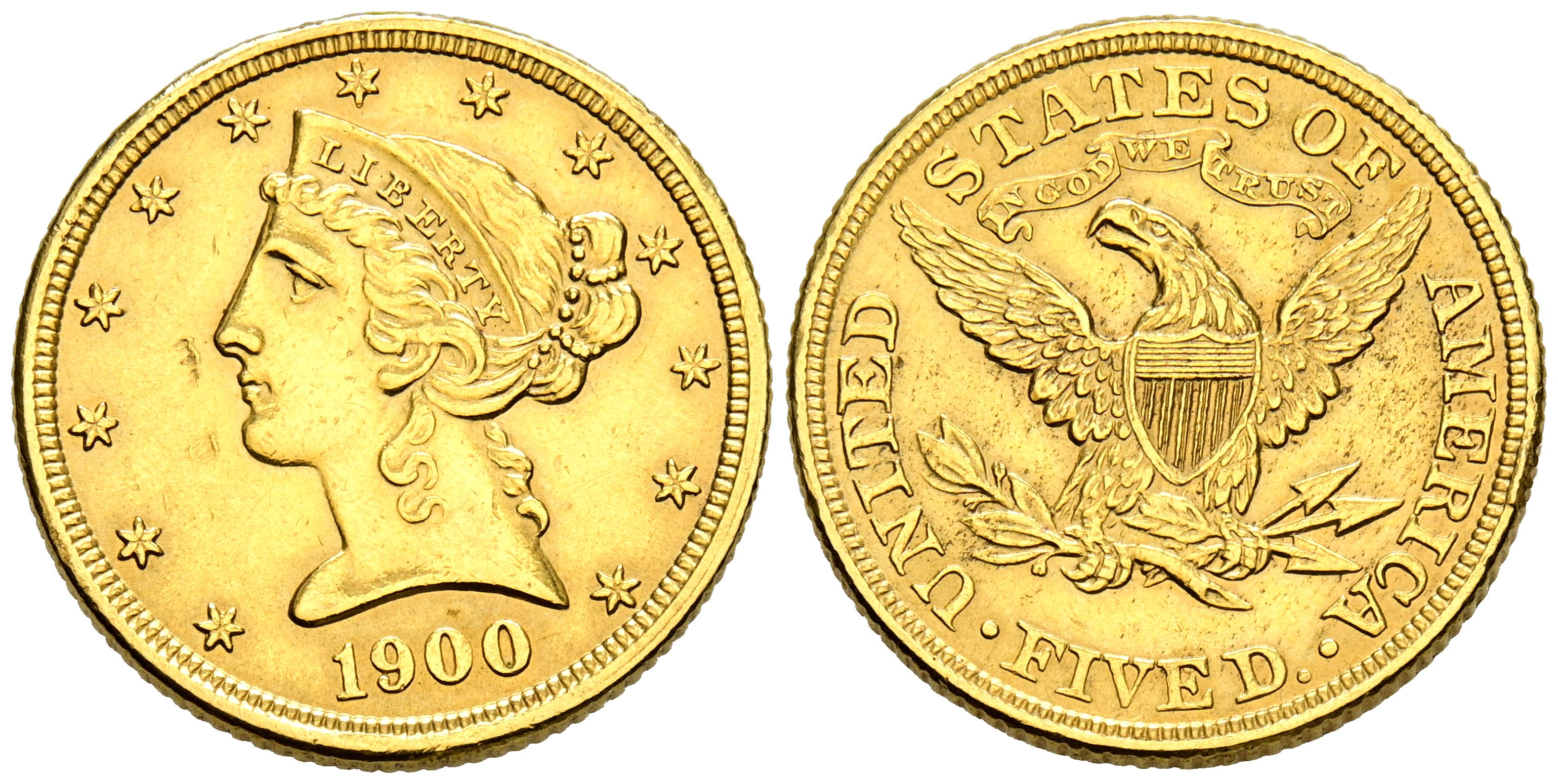 ESTADOS UNIDOS. 5 Dólares. (Au. 8,33g/21mm). 1900. Philadelphia. (Km#101). MBC+.