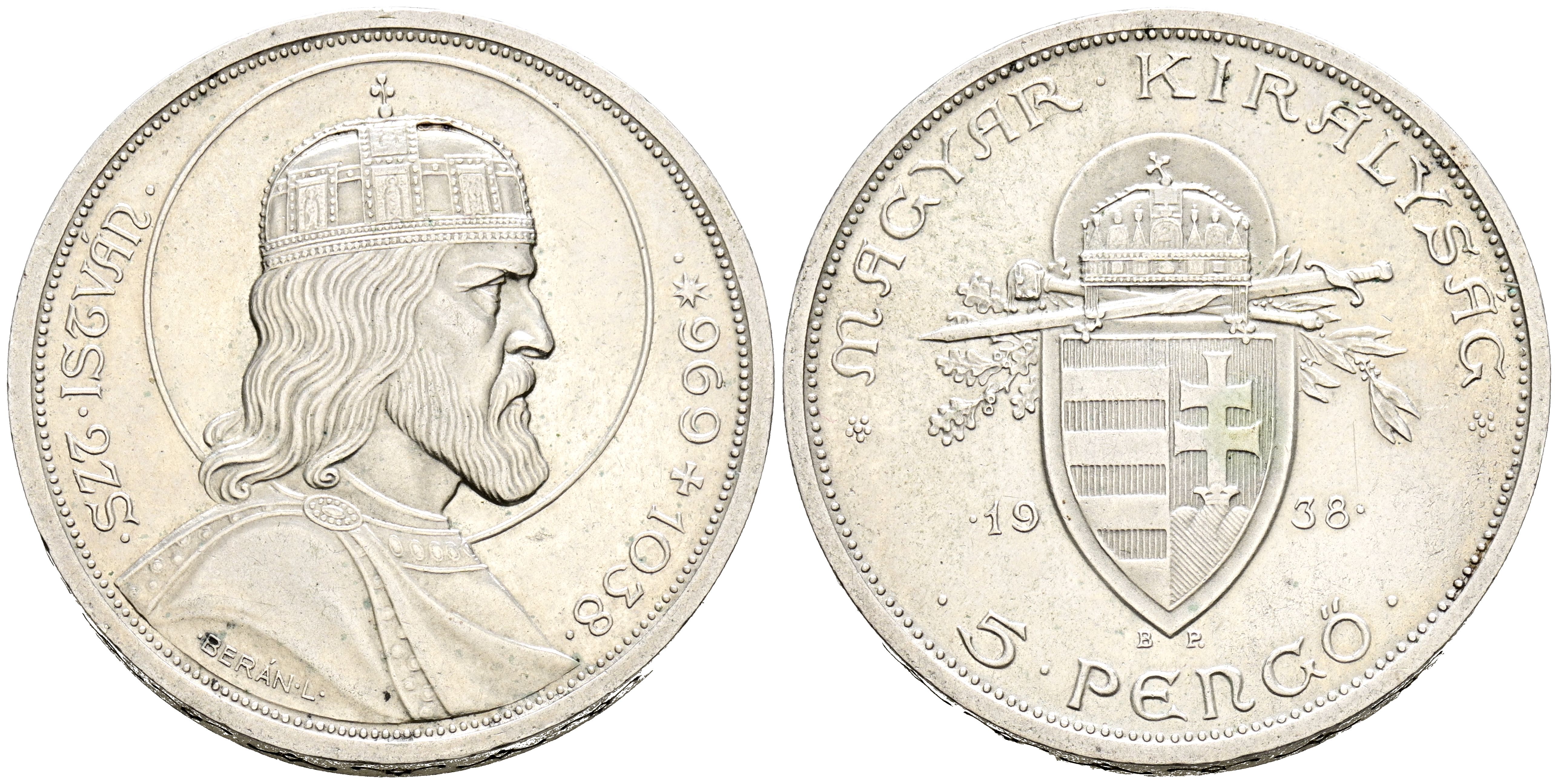 HUNGRÍA. 5 Pengo. (Ar. 25,03g/36mm). 1938. Budapest. (Km#516). EBC.