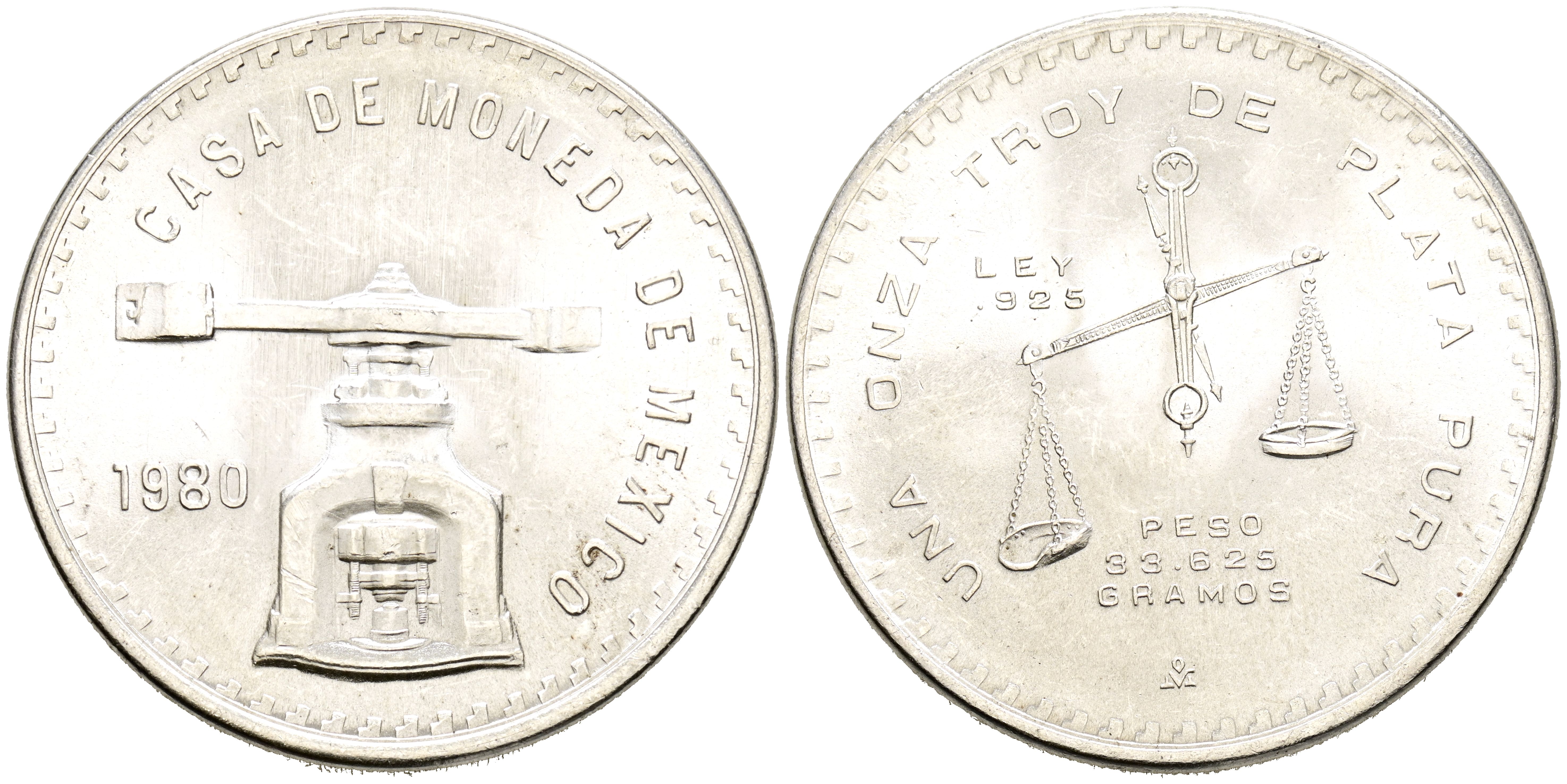 MÉXICO. 1 Onza Troy de Plata. (Ar. 33,58g/41mm). 1980. (Km#M49b.5). EBC.