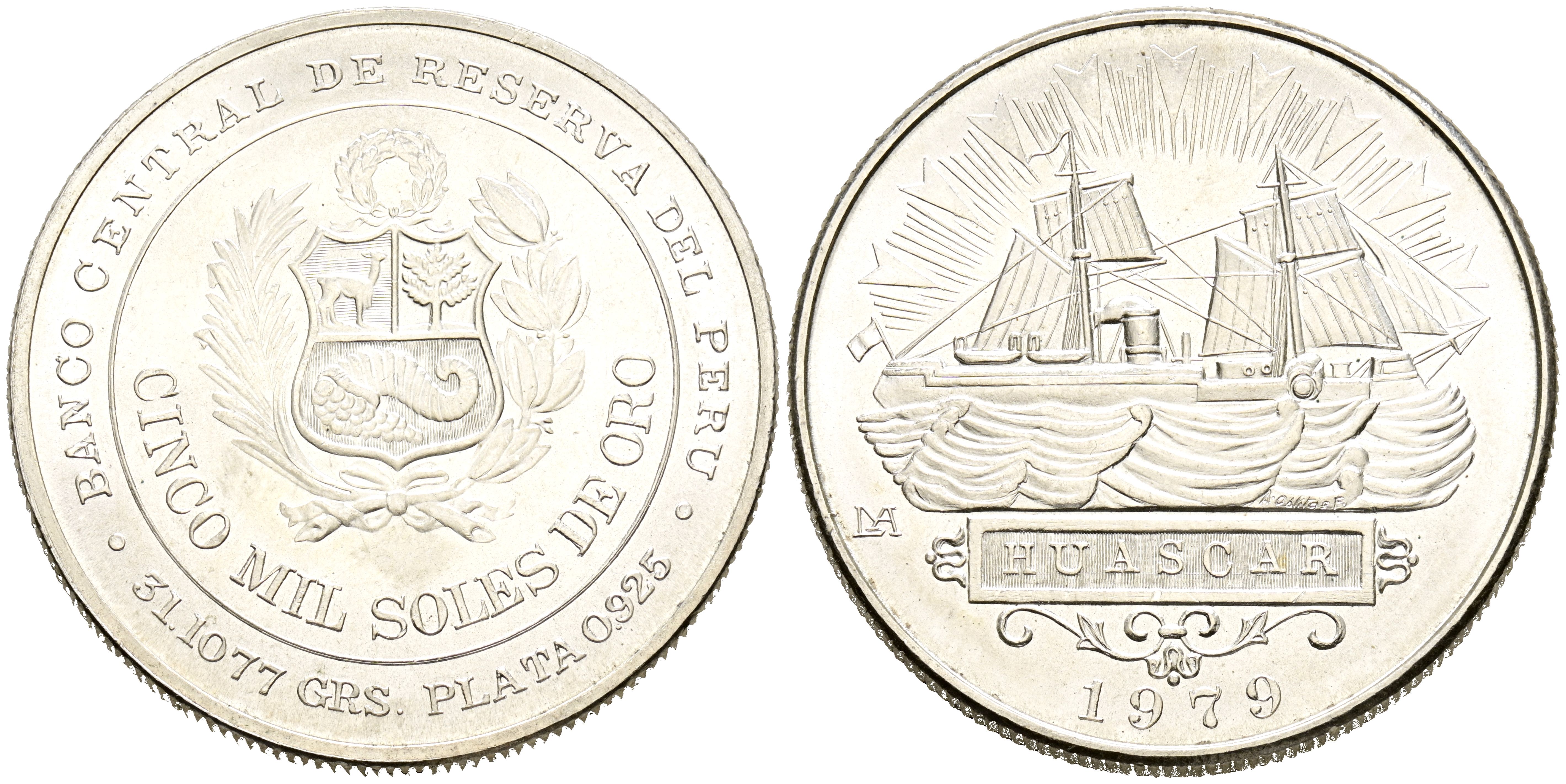 PERÚ. 5000 Soles de Oro. (Ar. 33,98g/40mm). 1979. Lima. Centenario Batalla de Iquique. (Km#276). EBC+.
