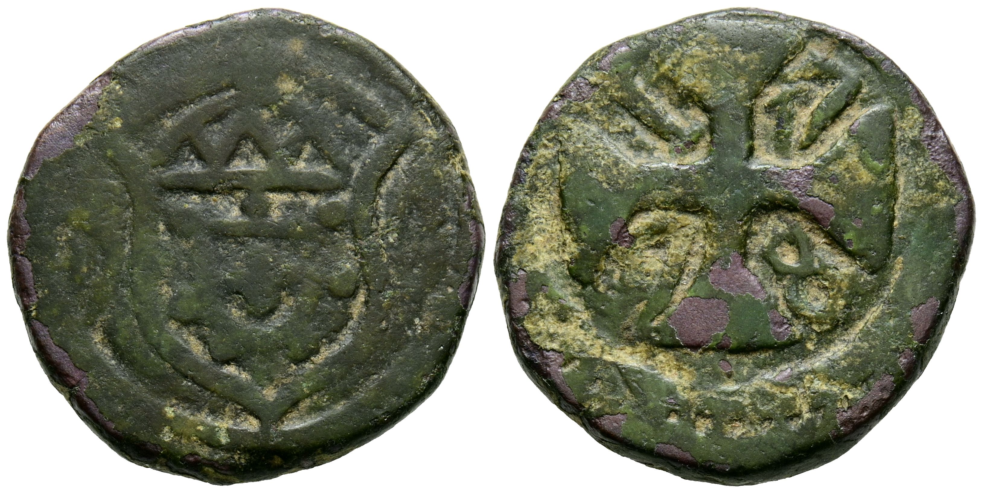 INDIA PORTUGUESA. D. Maria I y Pedro III (1777 - 1786). Atiá. (Ae. 8,79g/22mm). 1778. Diu. (Gomes-03.03). BC+. Patina verde.