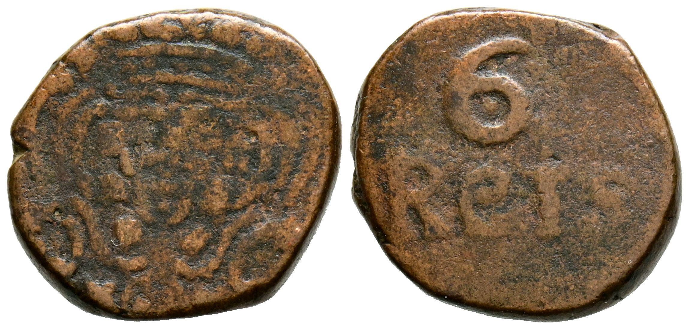 INDIA PORTUGUESA. D. Maria I (1786 - 1799). 6 Réis (Dududdú). (Ae.3,68g/16mm). (Gomes-14.01). MB.