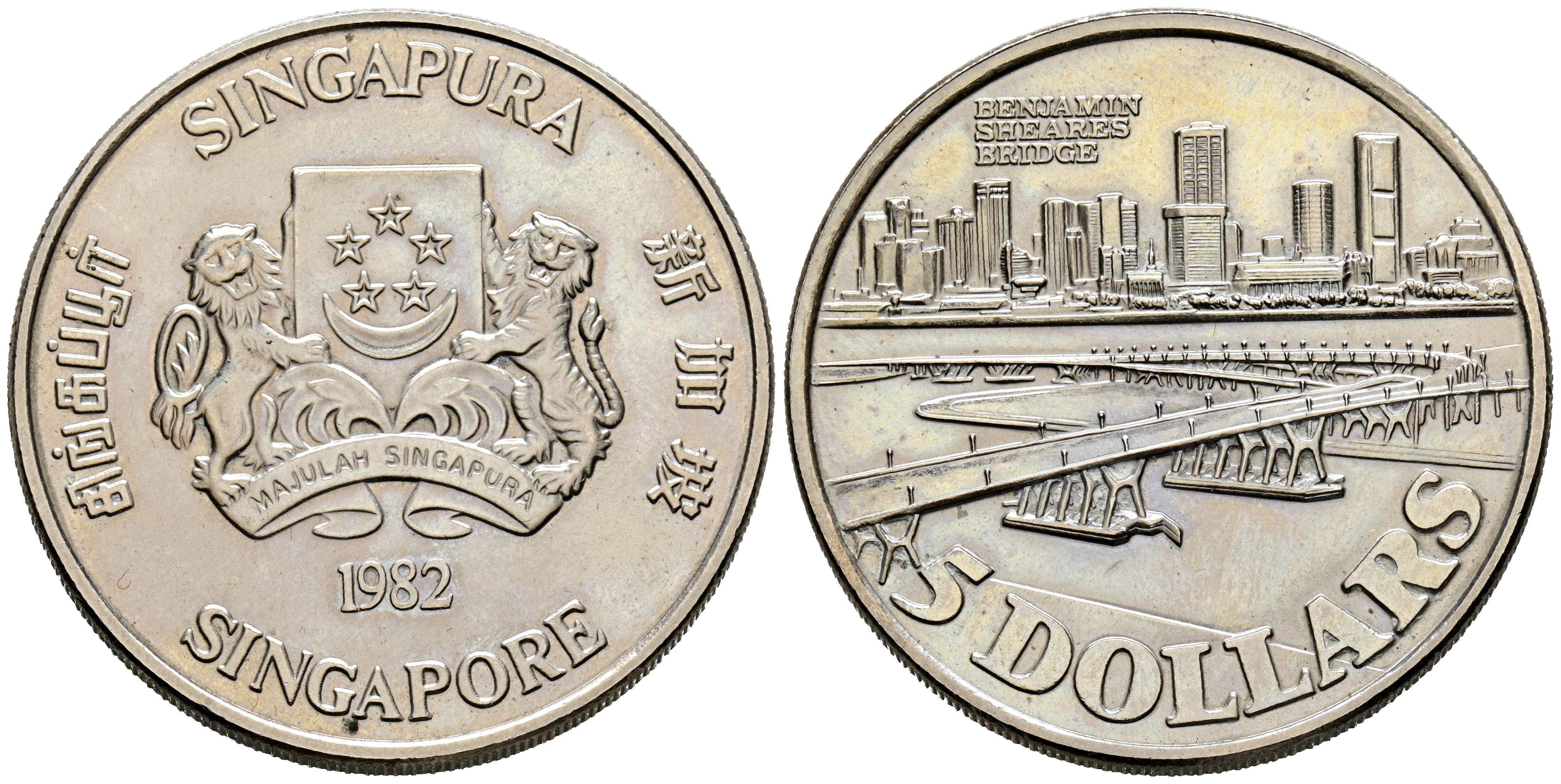SINGAPUR. 5 Dollar. (CuNi. 16,90g/33mm). 1982. (Km#22). Puente de Benjamin Sheares. PROOF.