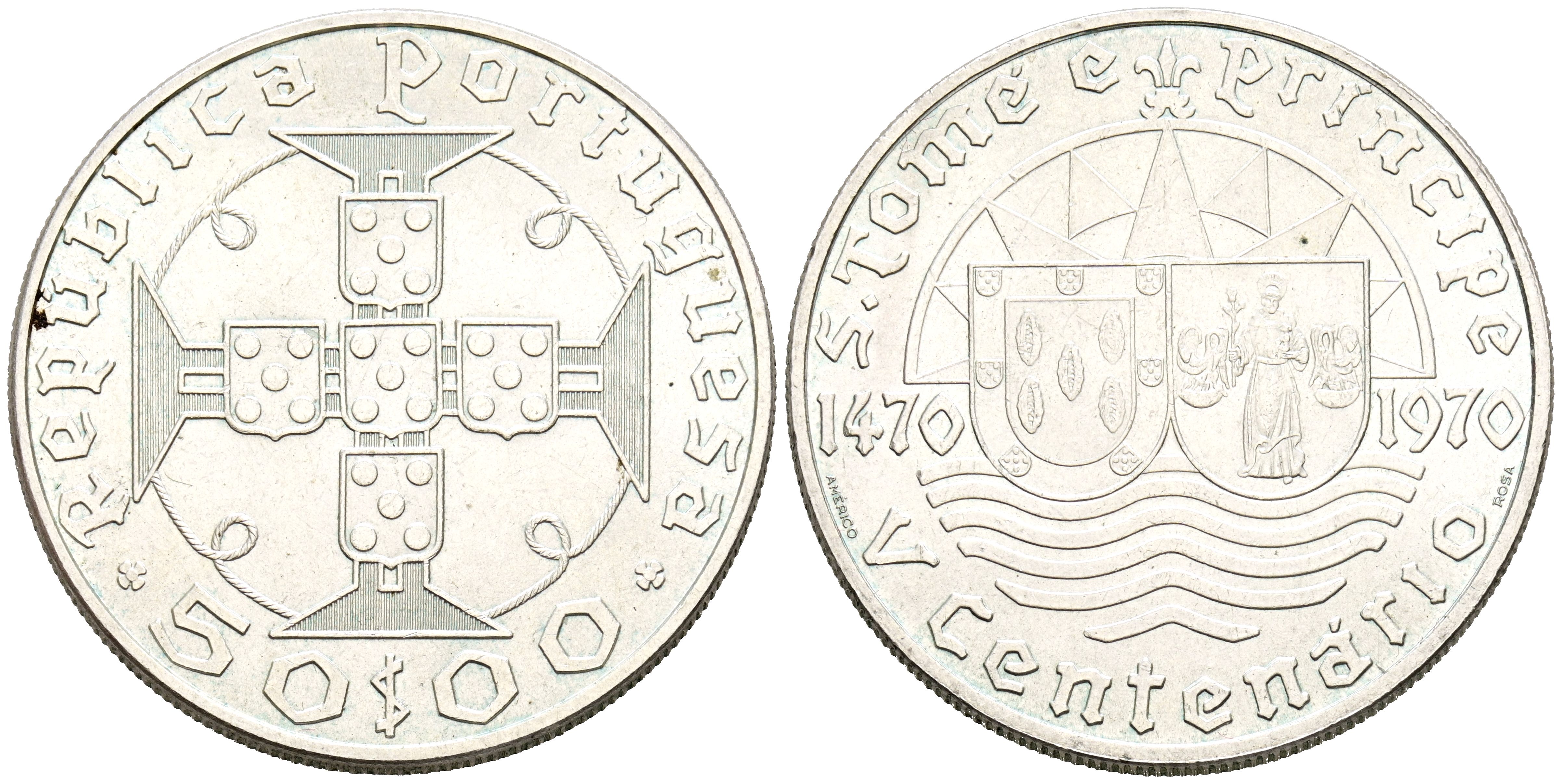 Santo Tomé y Principe (Portugués). 50 Escudos. (Ar. 18,10g/31mm). 1970. (Gomes 26. 01). EBC+.