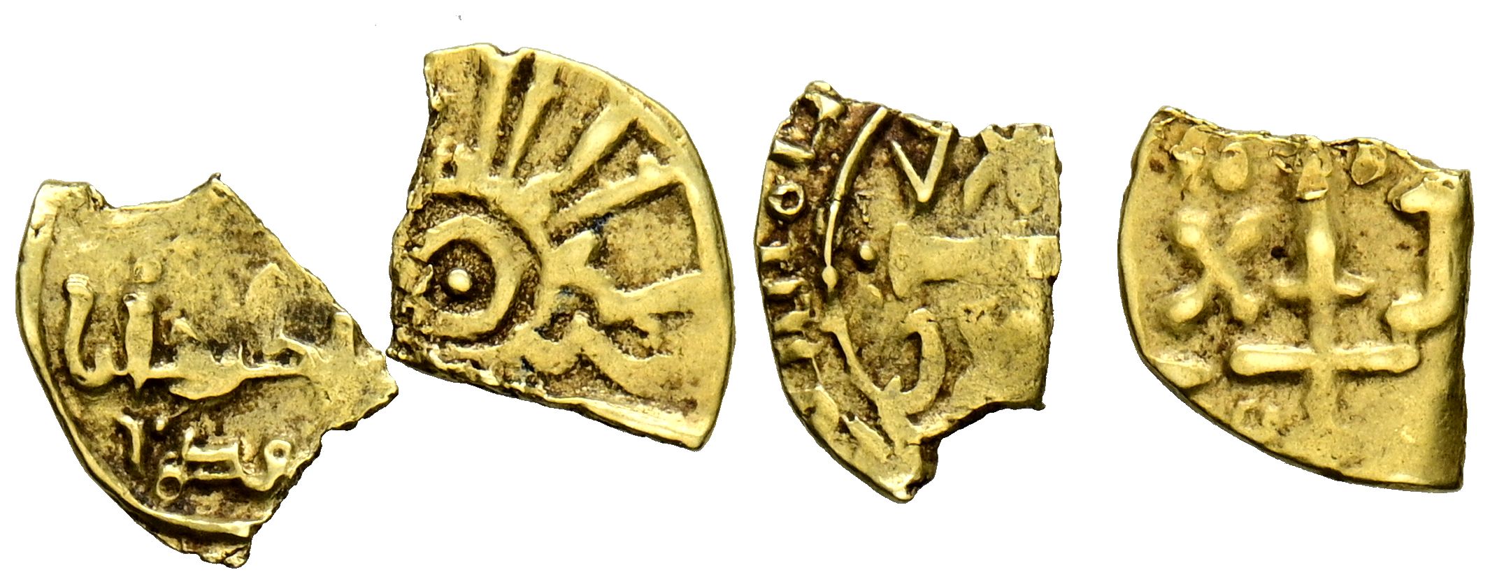 NORMANDOS DE SICILIA. Roger II (1130-1154H). Tarí. (Au. 0,54g/7mm). 535H. Medina Sicilia. Dos fracciones de 1/4 de Tari. (Spahr 43 y 63; MIR 22 Y 431, 14 Y 429). MBC+.