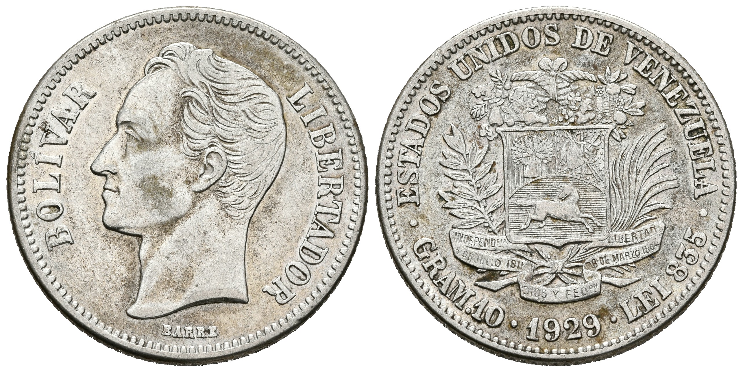 ESTADOS UNIDOS DE VENEZUELA. 2 Bolívares. (Ar. 10,00g/27mm). 1929. Philadelphia. (Km#Y23). EBC.