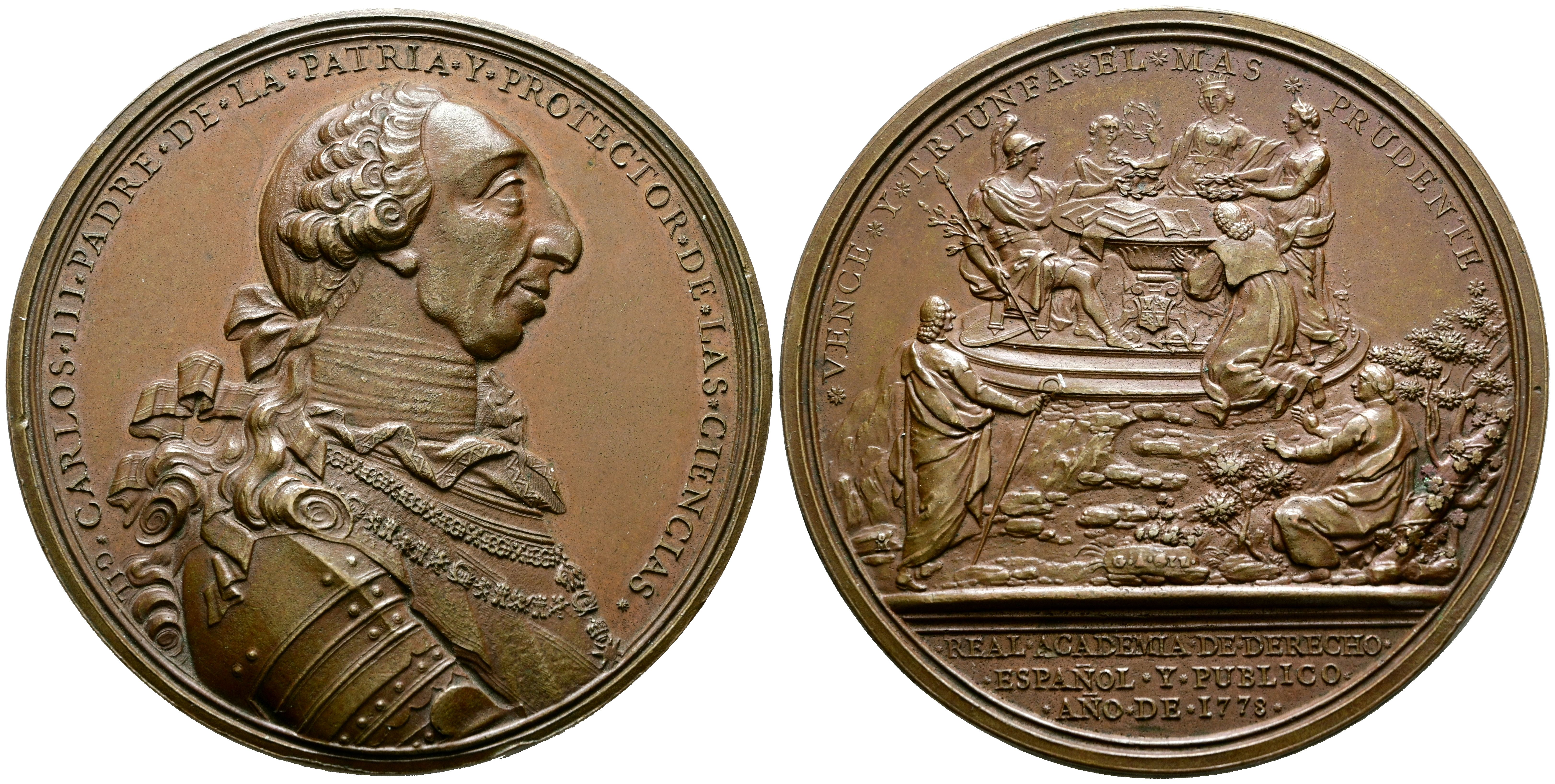 CARLOS III (1759-1788). Premio de la Real Academia de Derecho Español y Público. (Ae. 106,06g/59mm). 1778. Grabador: Gerónimo A. Gil. (VQ-14126). EBC.
