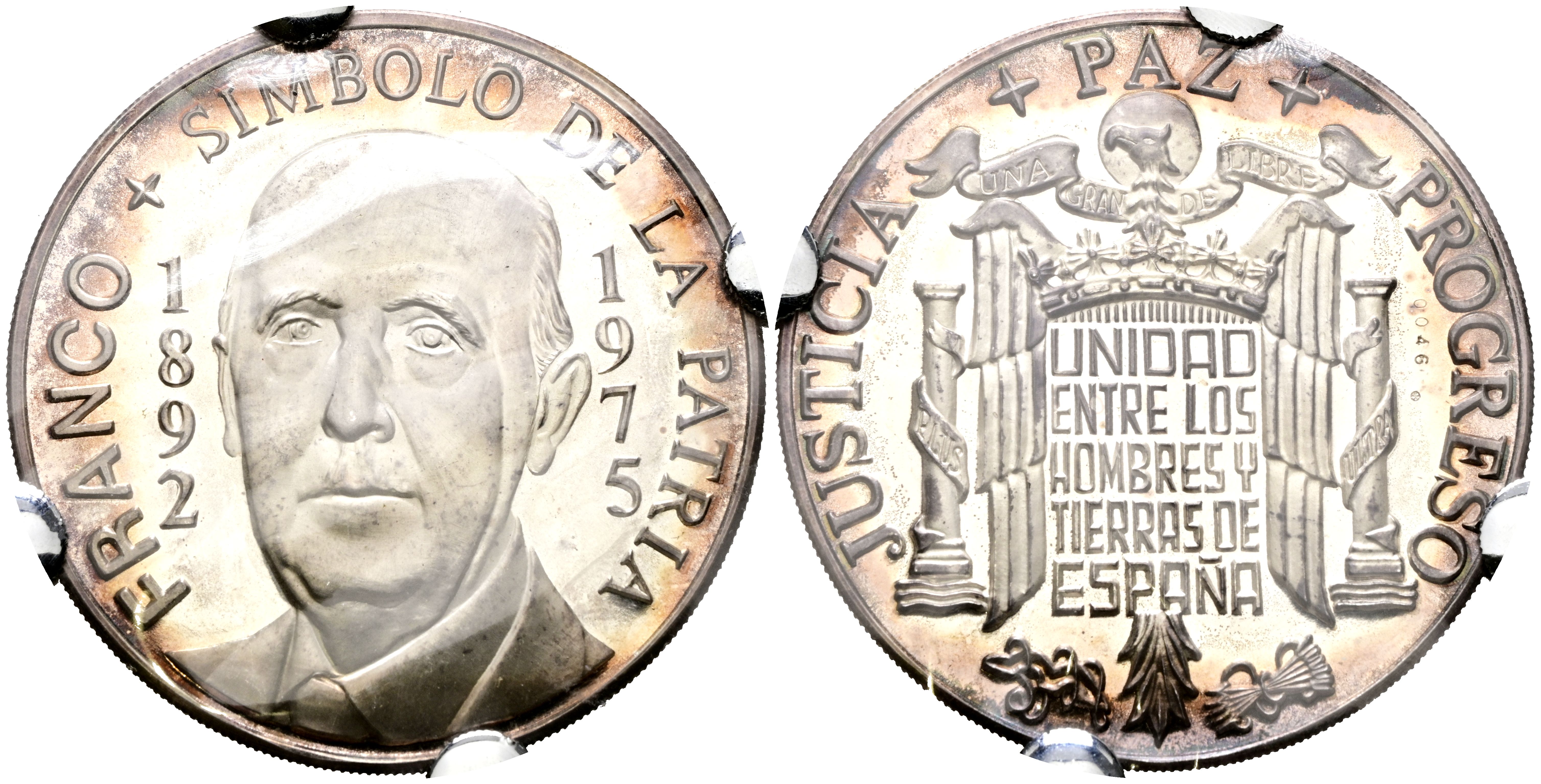 ESPAÑA. Medalla conmemorativa: FRANCO SÍMBOLO DE LA PATRIA 1892-1975. (Ar. 57,09g/65mm). Pieza numerada: 0046. PROOF. A EXAMINAR.