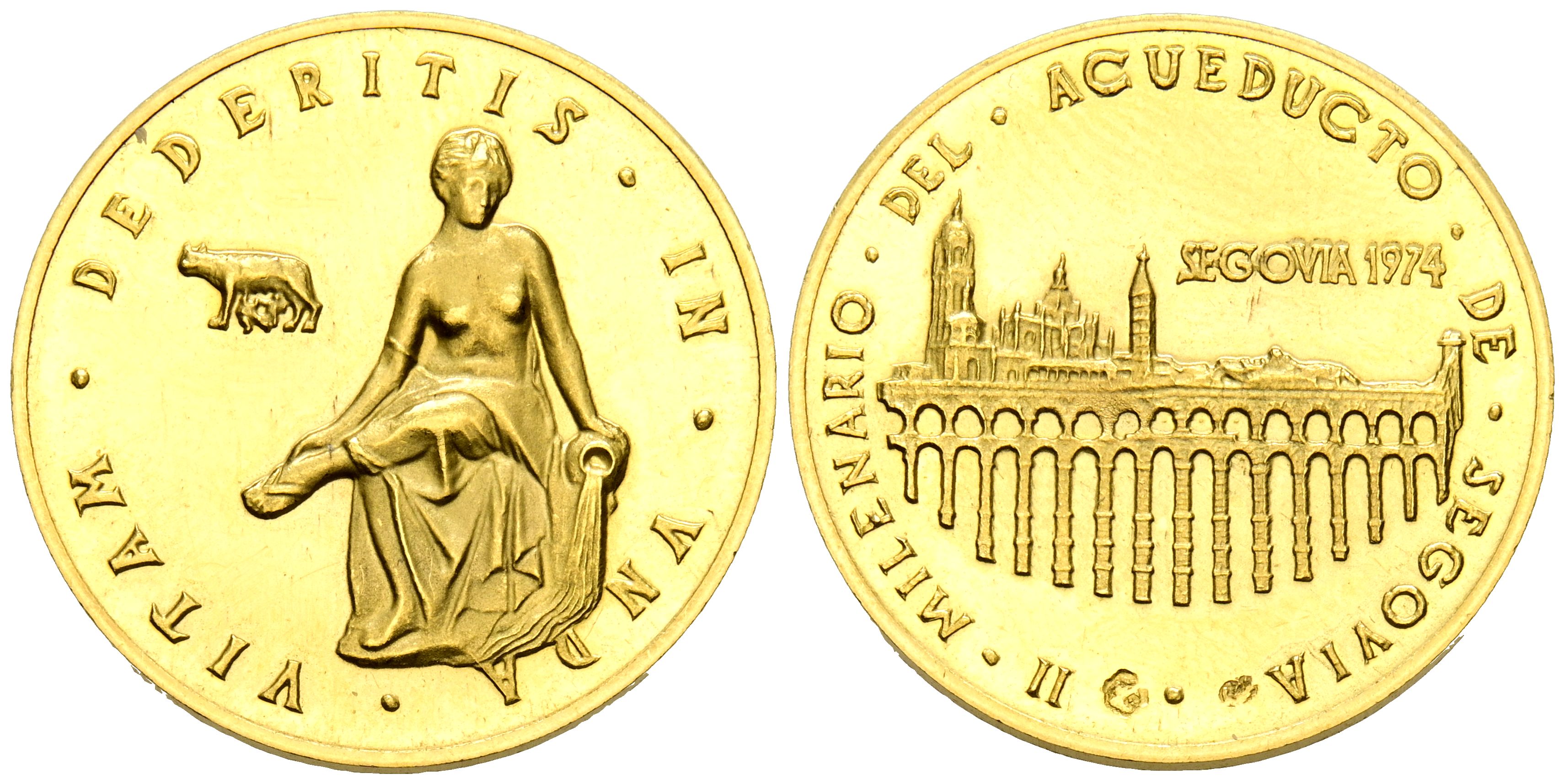ESPAÑA. II Milenario del Acueducto de Segovia. (Au. 7,13g/24mm). 1974. Segovia. Oro de 0,920 milésimas. Rayitas de limpieza.