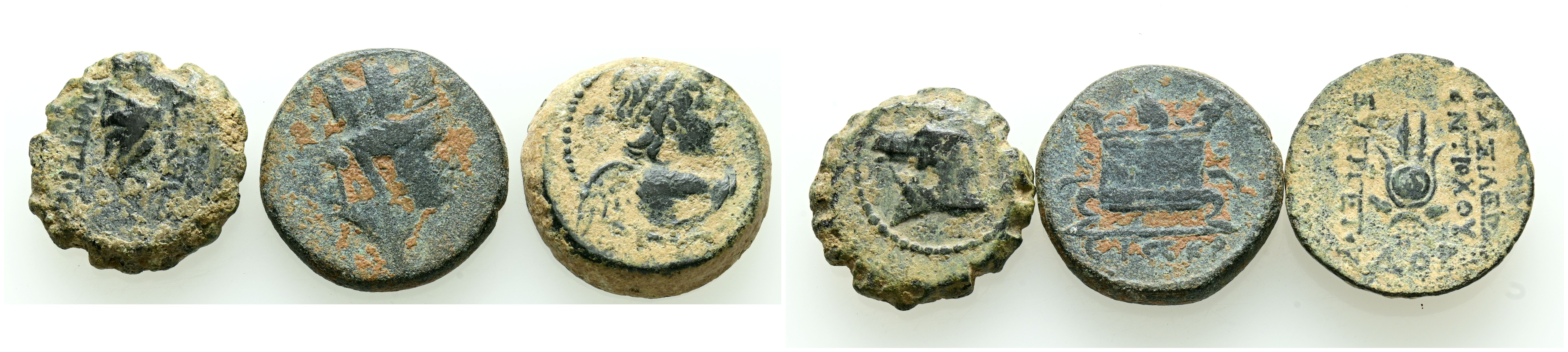 GRECIA ANTIGUA. Conjunto de 3 bronces griegos de distintos lugares y tipos. A EXAMINAR.