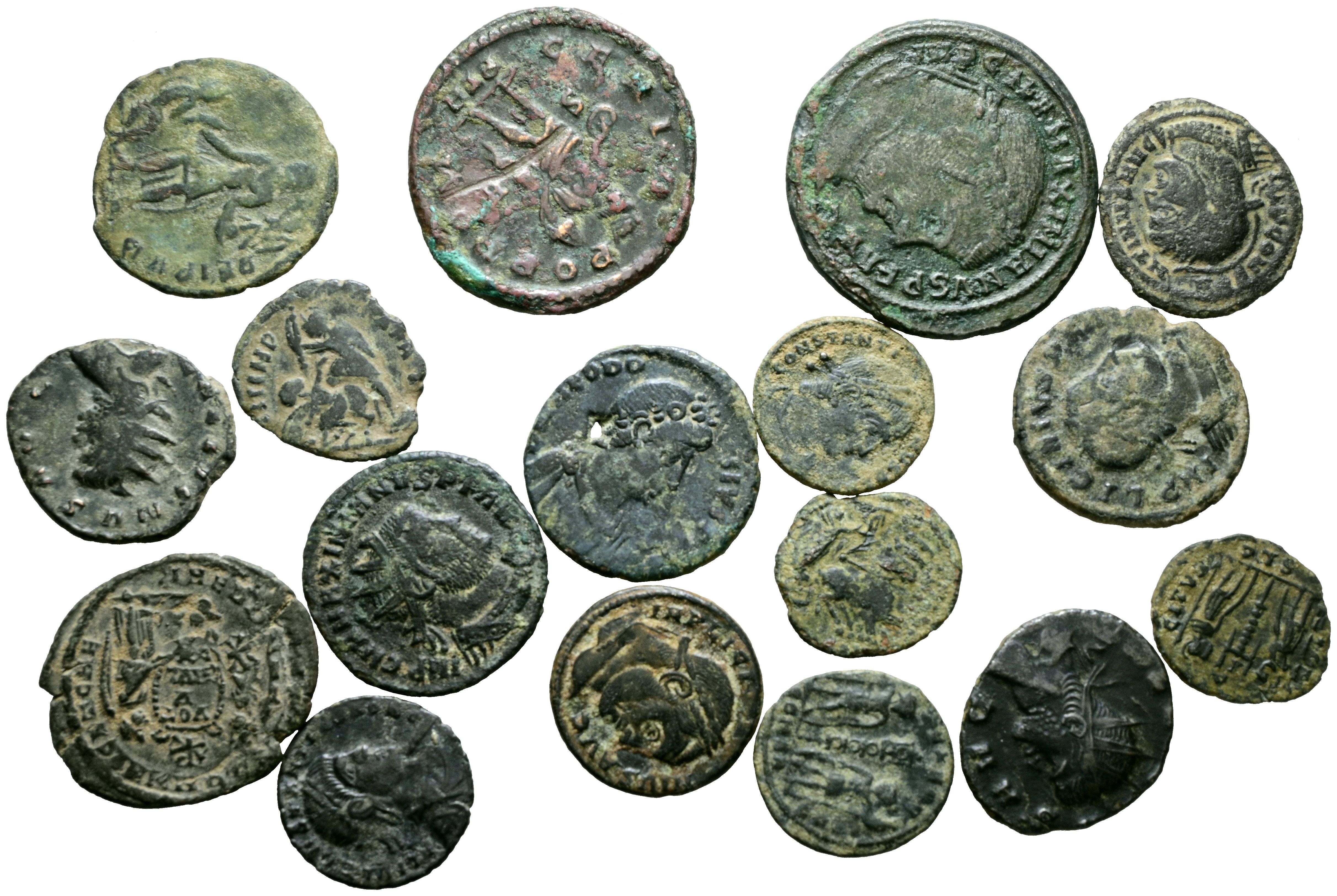 IMPERIO ROMANO. Interesante conjunto de 17 piezas de Bajo Imperio. Diferentes calidades, módulos y medidas. A EXAMINAR.