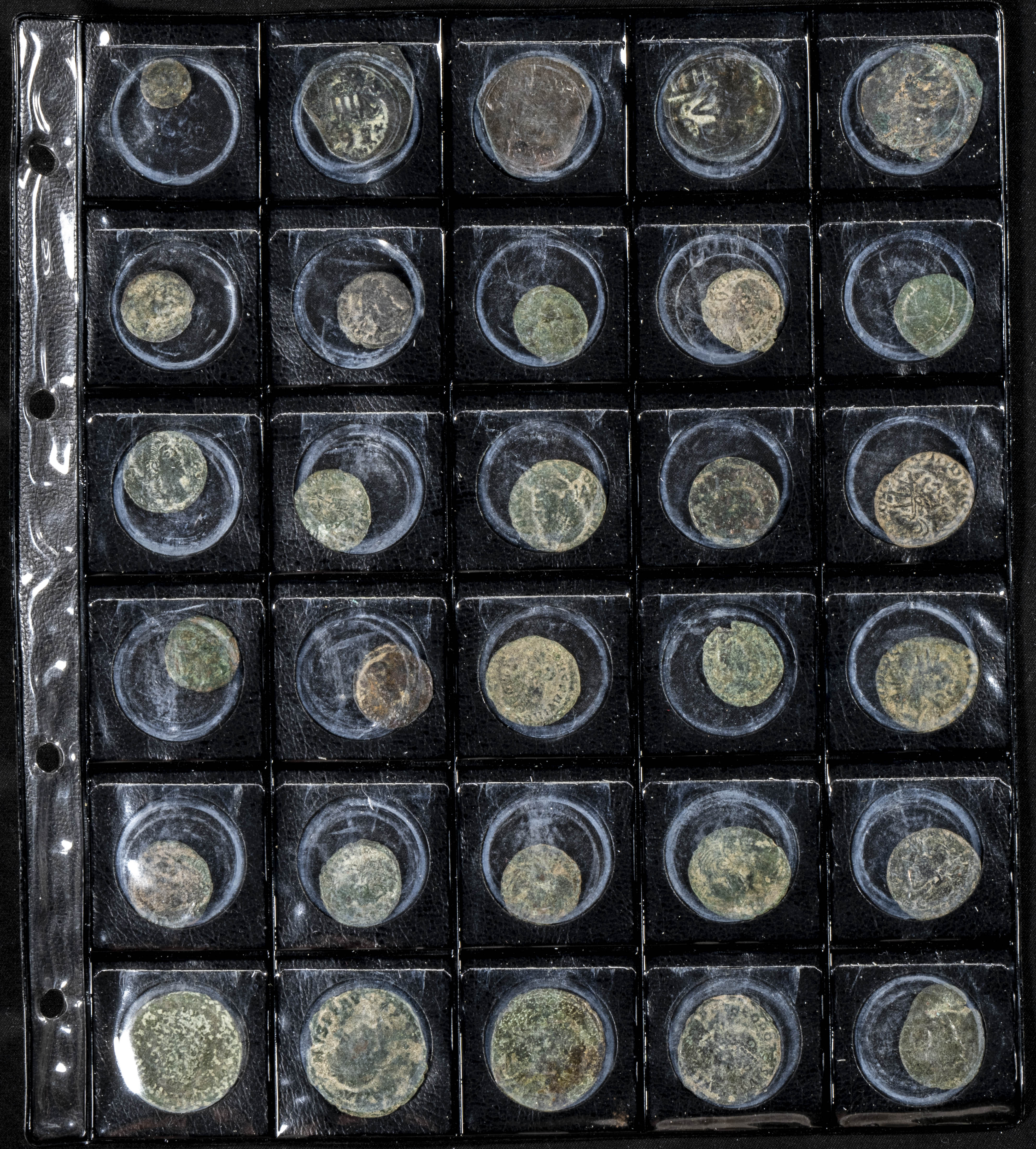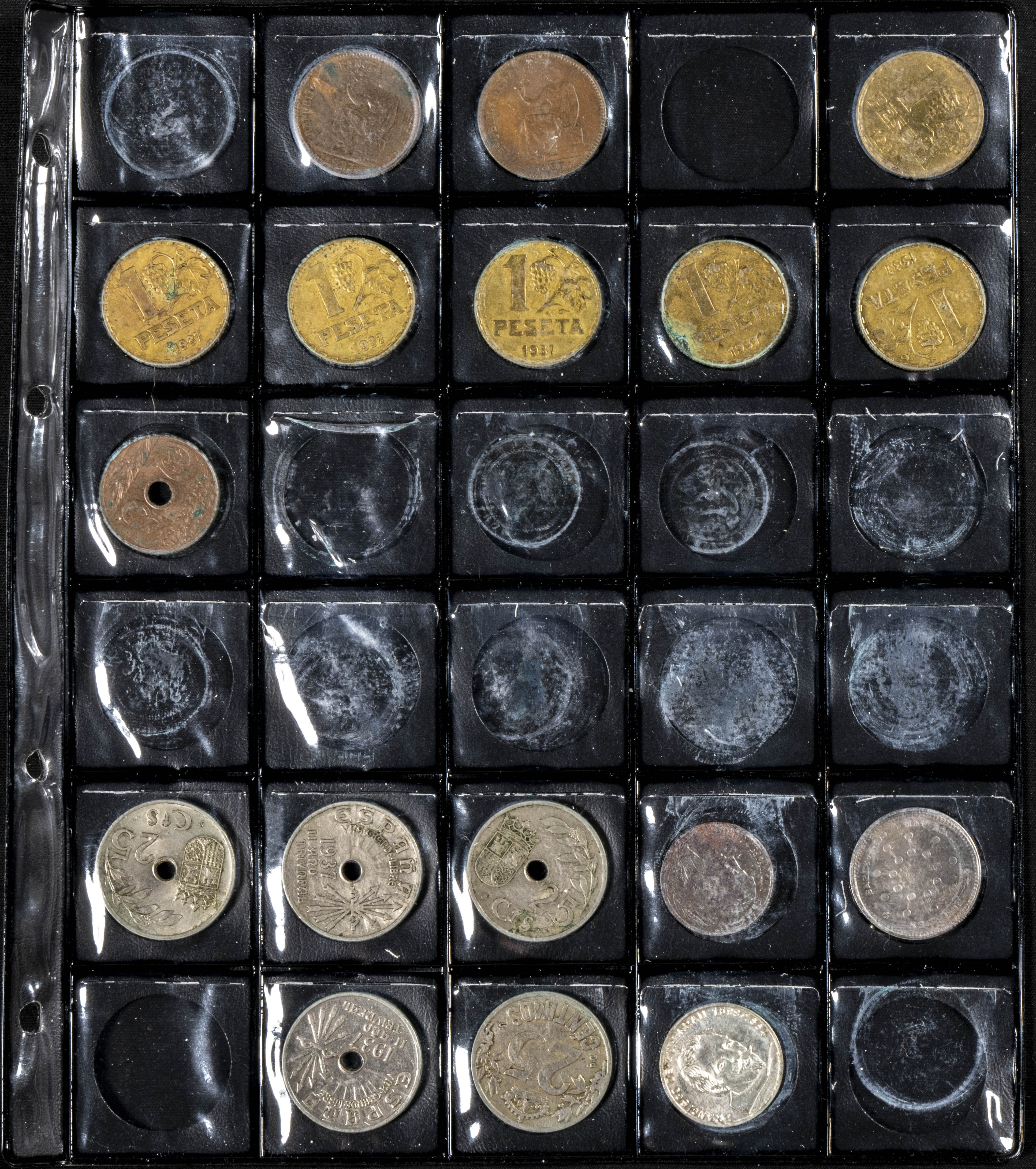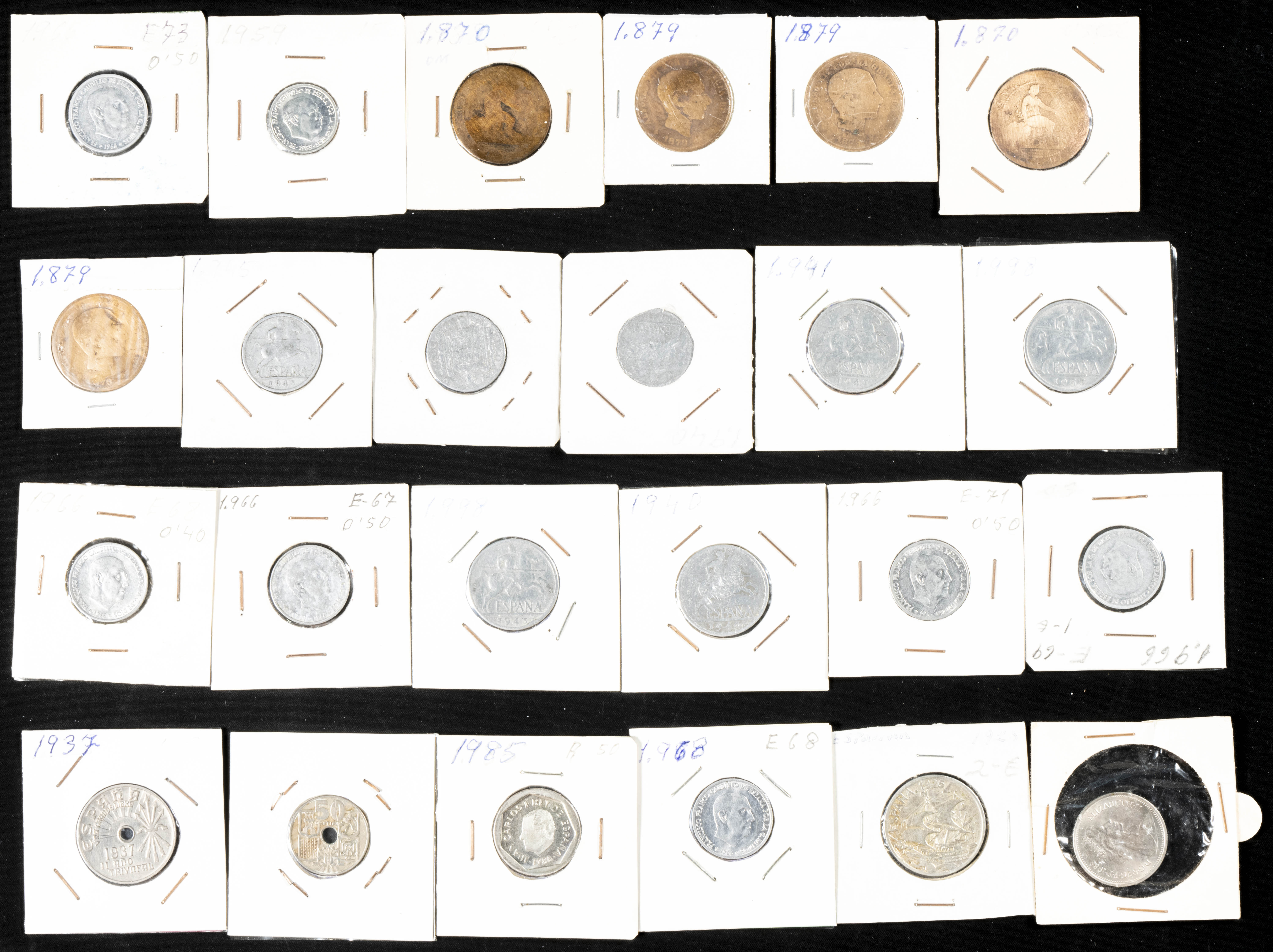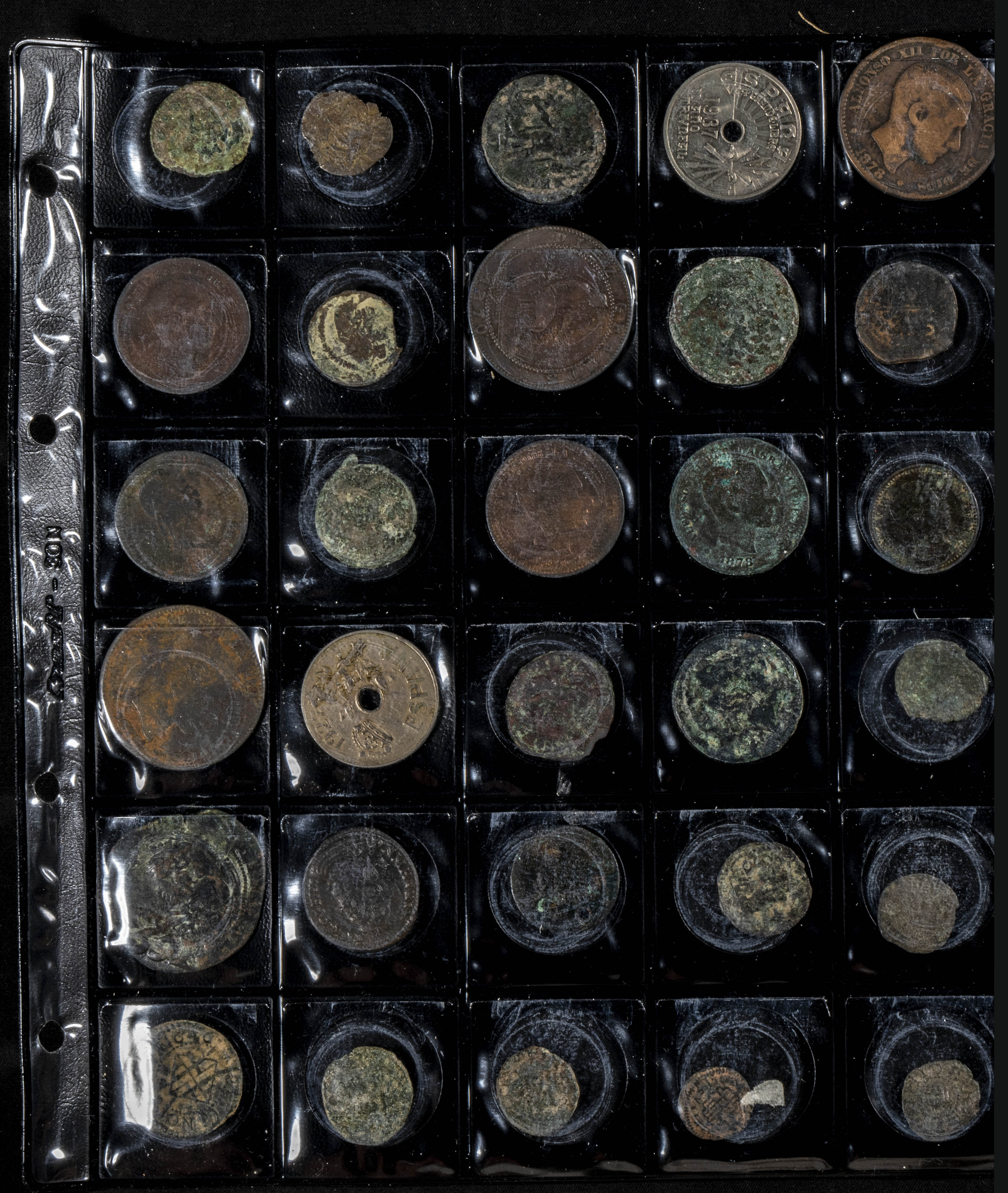 Conjunto de decenas de piezas, principalmente cobres, de diferentes épocas. Destacan, en el conjunto, un gran número de ejemplares de la Monarquía Española y Centenario así como del Mundo antiguo. Diferentes estados de conservación. A EXAMINAR.