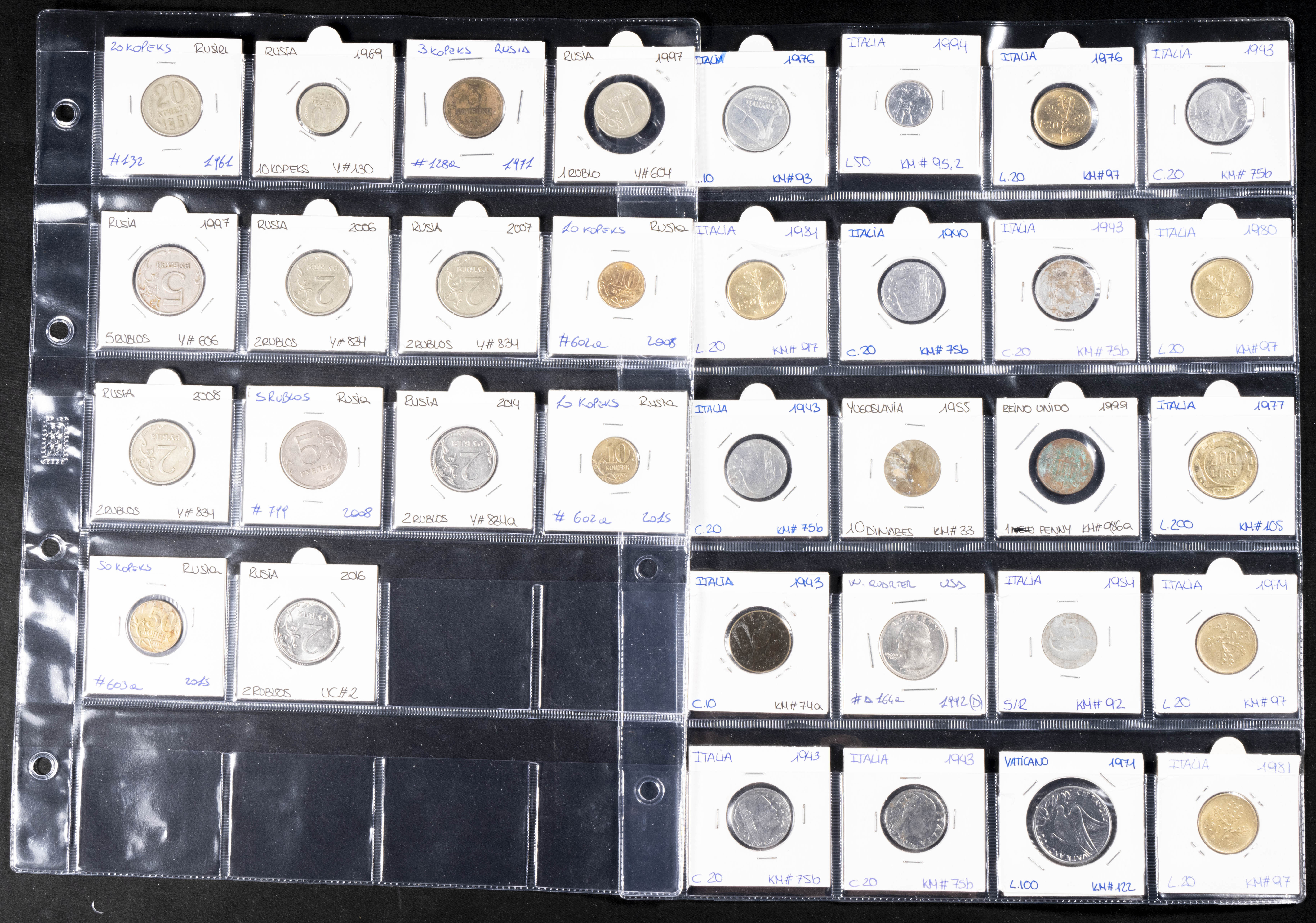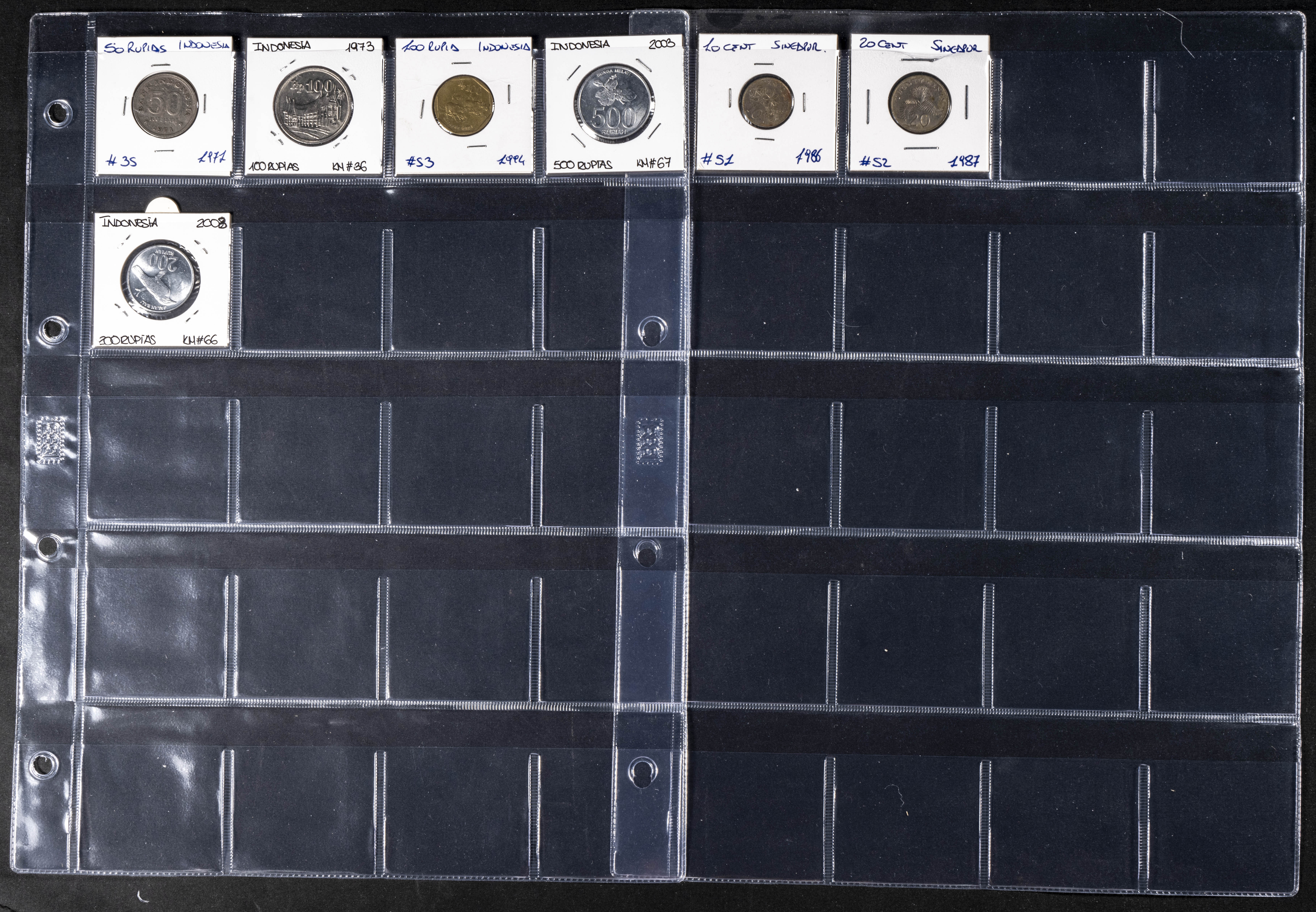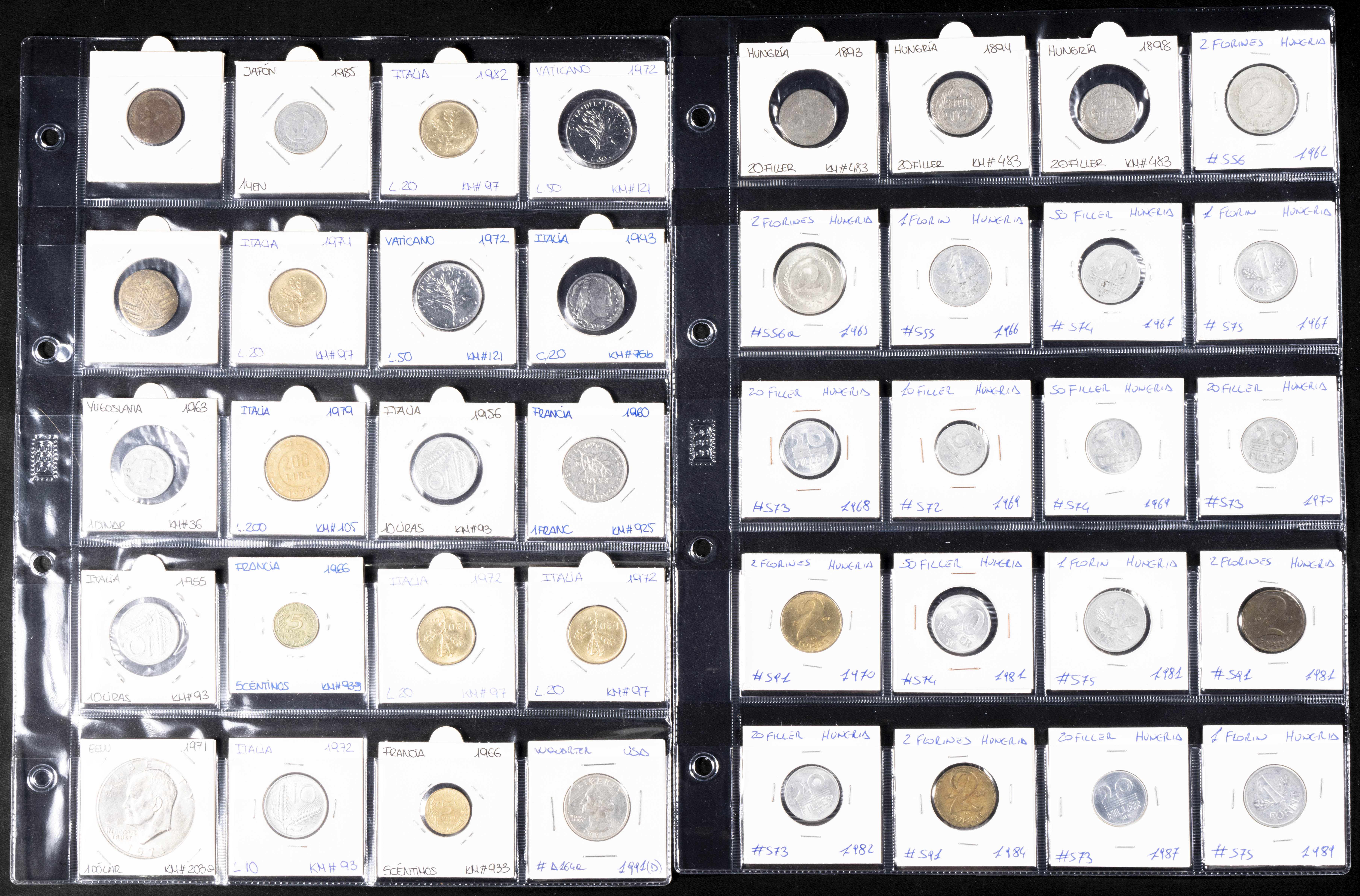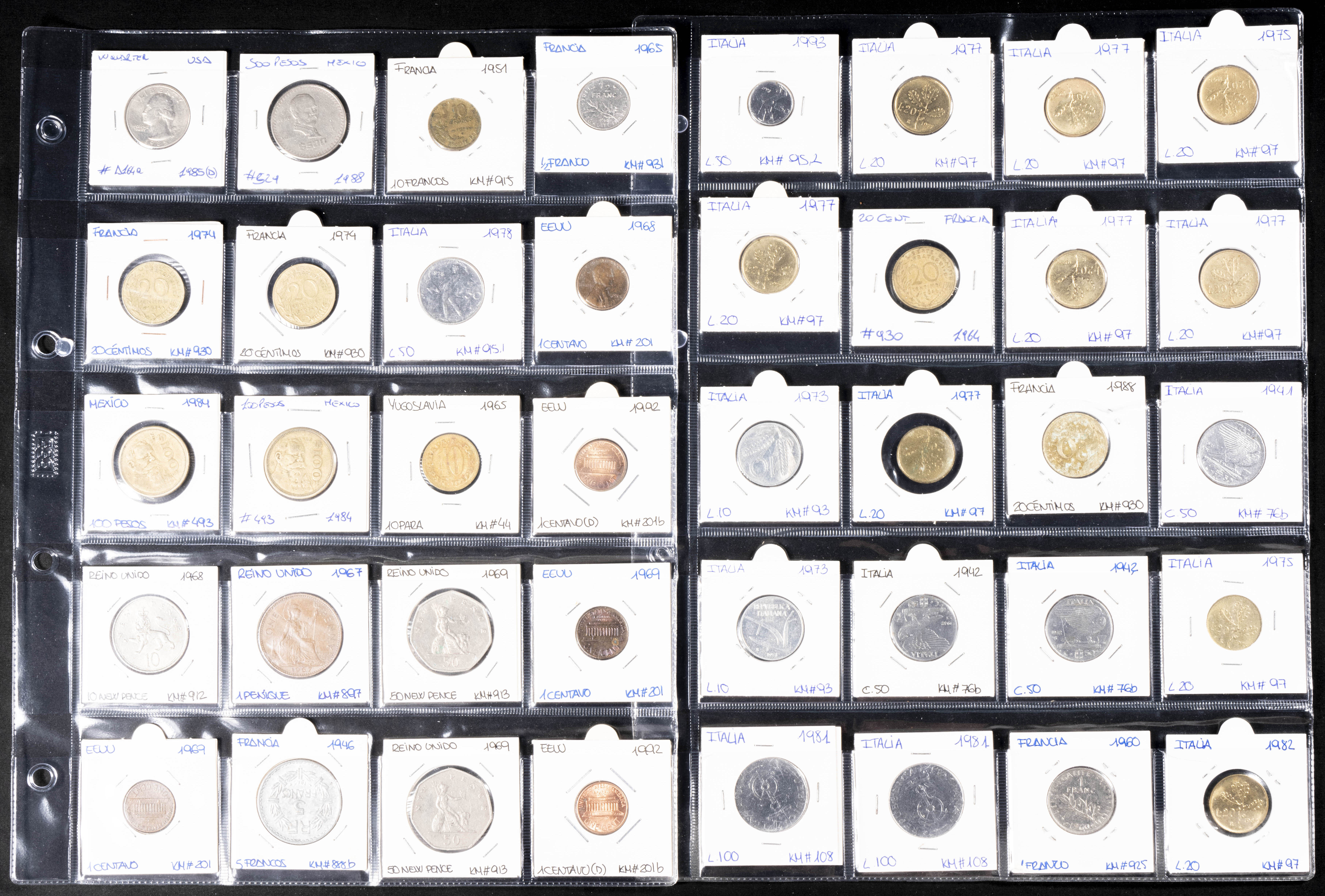 MONEDAS EXTRANJERAS. Interesante y extenso conjunto de alrededor de 1300 monedas, expuestas en hojas, con una gran variedad general tanto de países como de fechas representados (S. XX). Incluye dos álbumes para colecciones de Euros. Diferentes estados de conservación. A EXAMINAR.