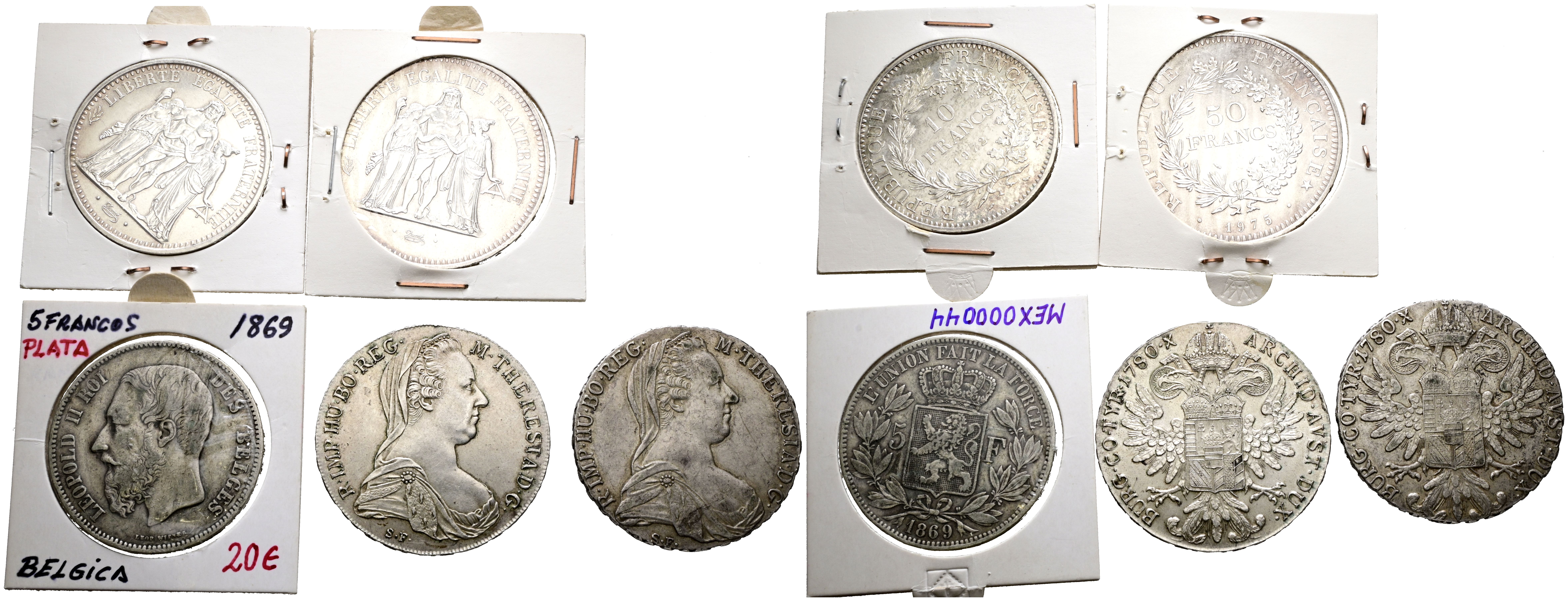 MONEDAS EXTRANJERAS. Conjunto de 5 monedas en plata de módulos grande acuñadas en diferentes épocas en Austria y Francia. Diferentes estados de conservación. A EXAMINAR.